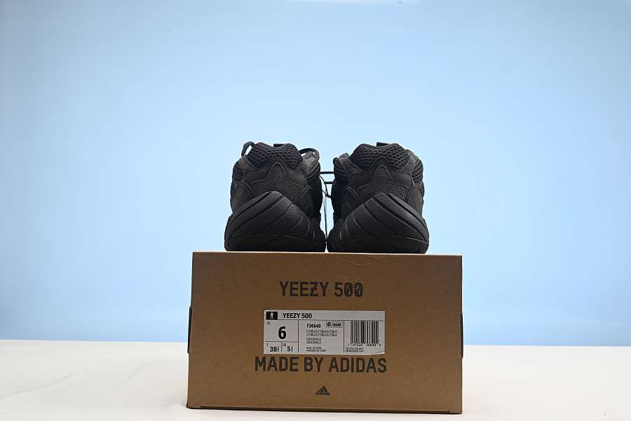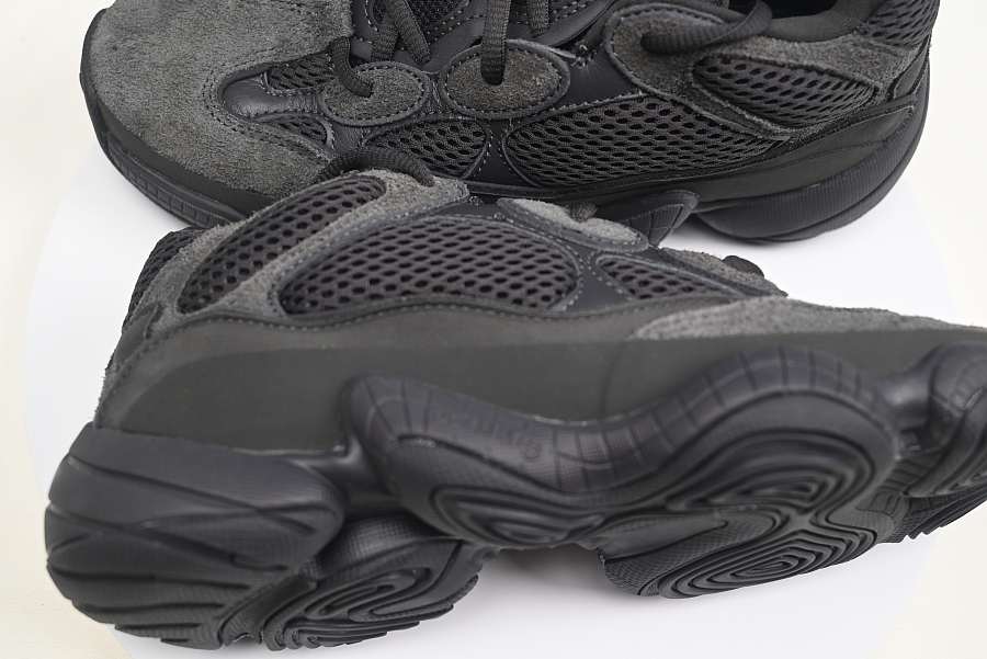 Tiger bashing Adidas Yeezy 500 all black color matching with 3M reflective strip embellishment Tiger bashing version Item F36640 number 36-12