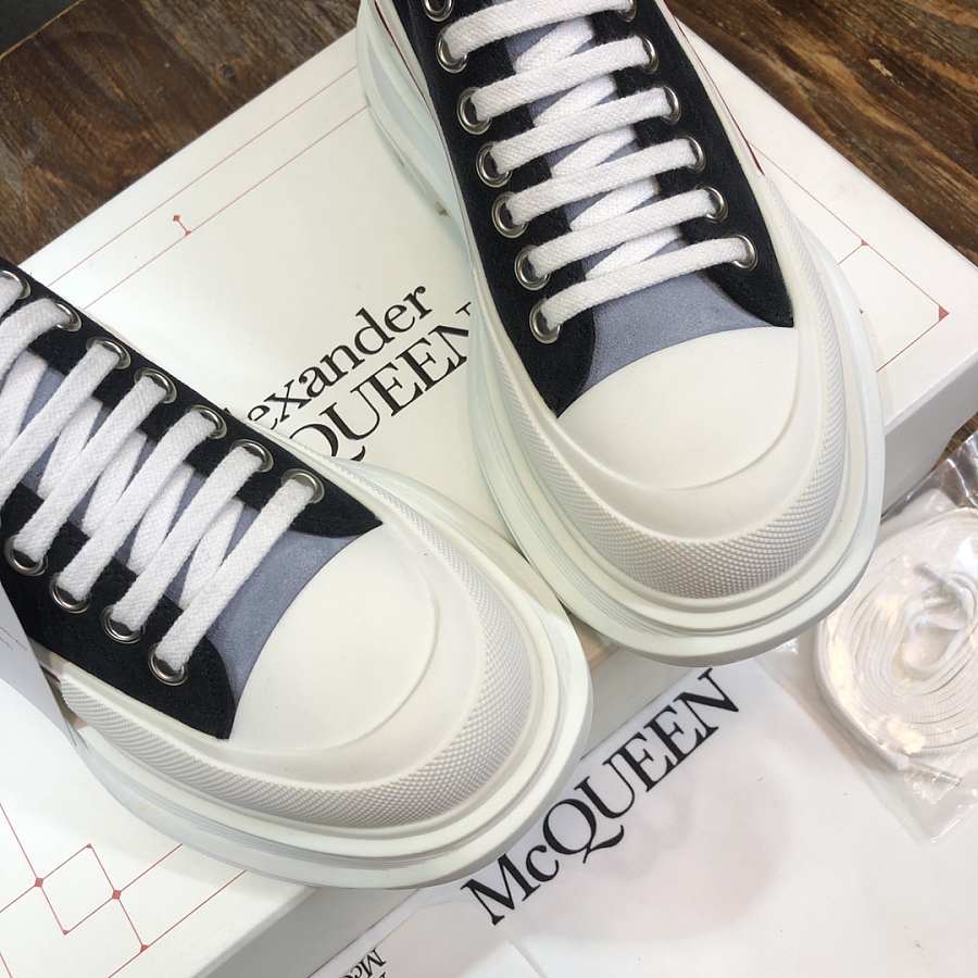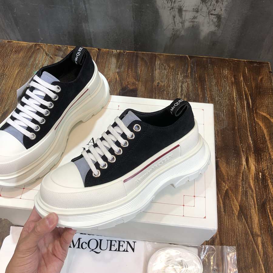 Alexander McQueen Tread Slick Lace Up Boot Low Black White Red Line
