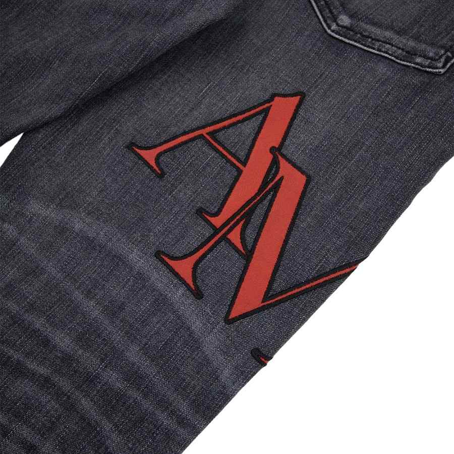 Amiri Staggered Embroidered Logo Jeans Rain Grey