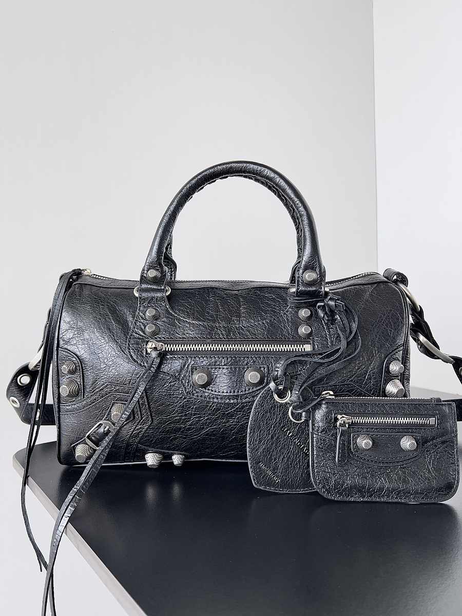 Balenciaga Le Cagole Duffle Medium Leather Top Handle Bag in Black 30*14*20CM
