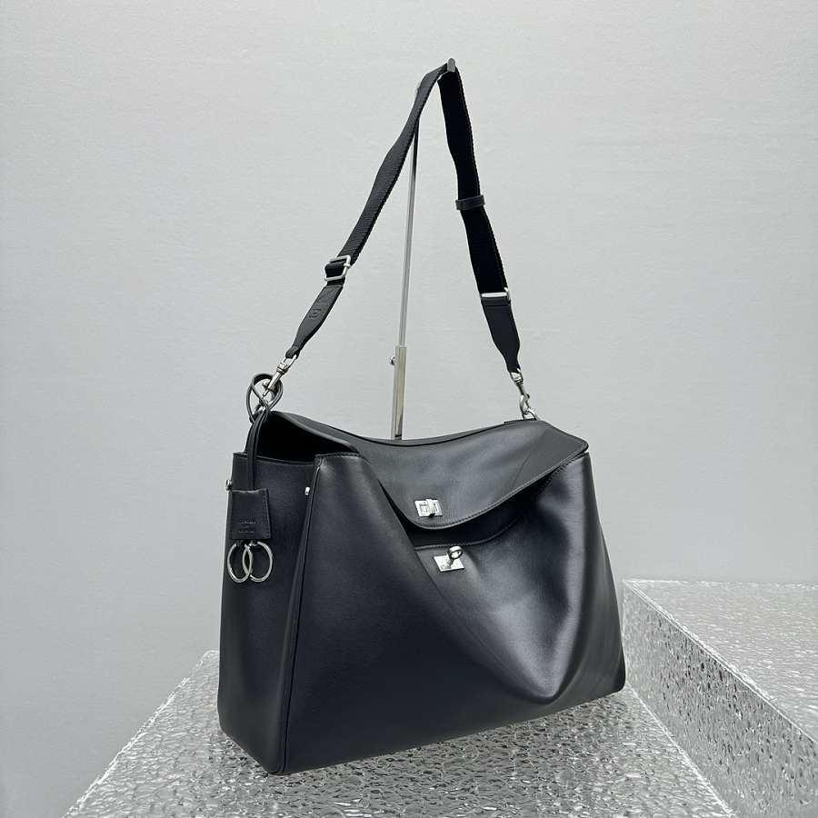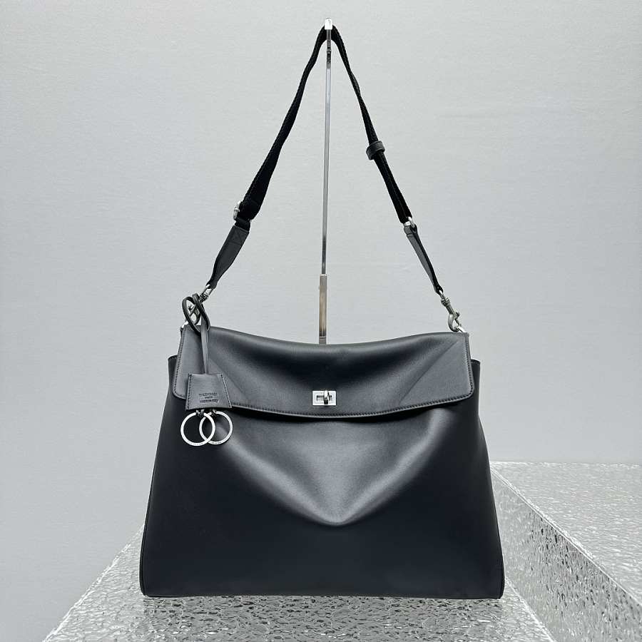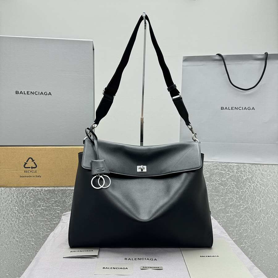 Balenciaga Rodeo Large Handbag in black smooth calfskin, aged-silver hardware 40*30*13CM