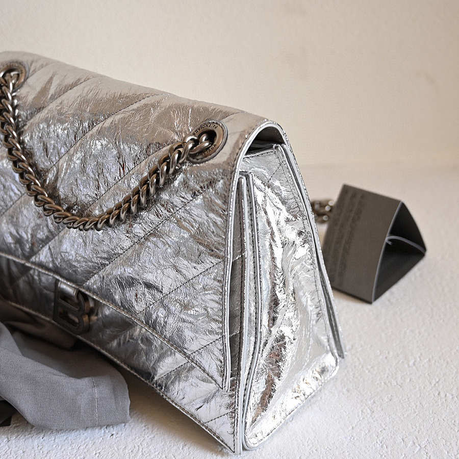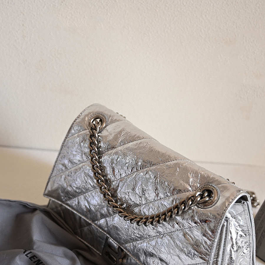 Balenciaga silver leather crush bag size 31x19.8x69cm