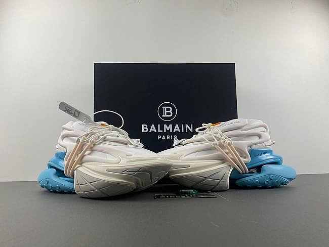 BALMAIN White & Blue Unicorn Sneakers 232251M237029