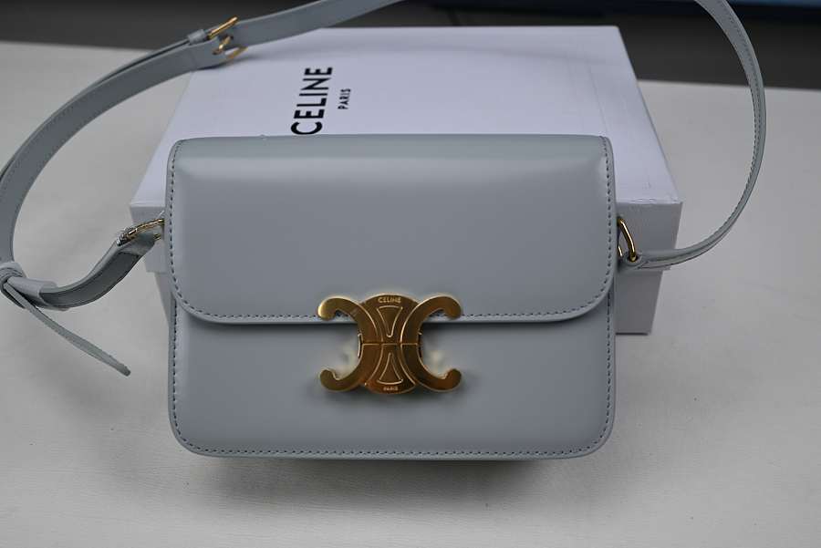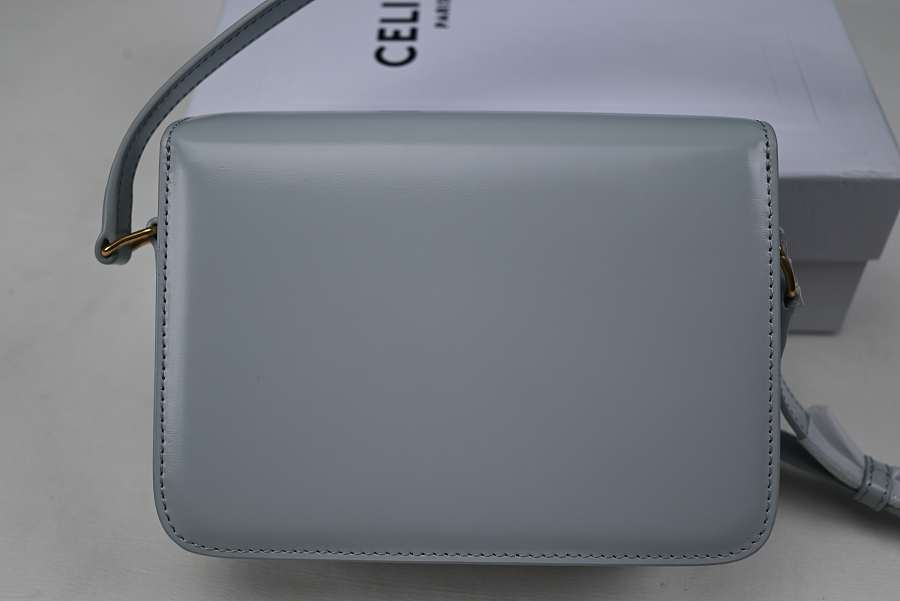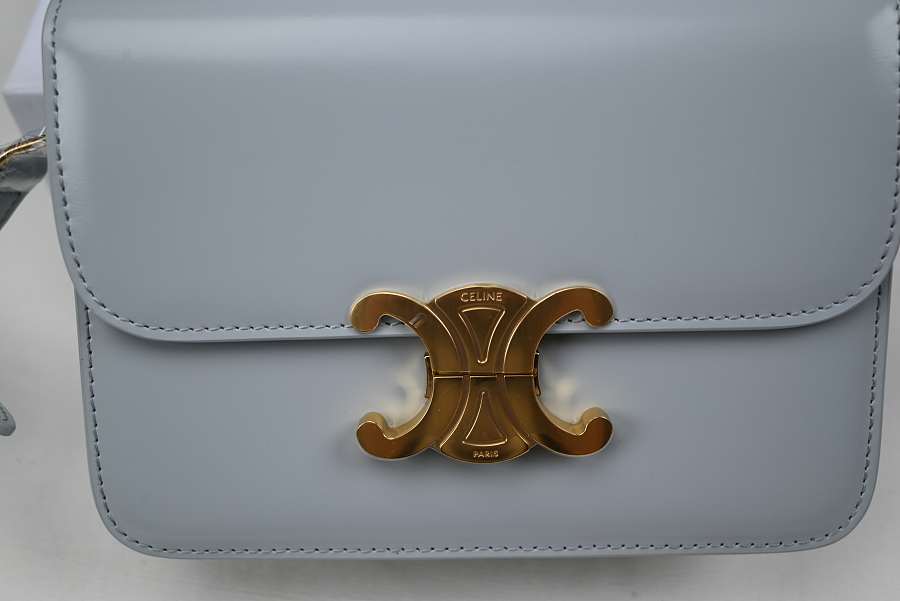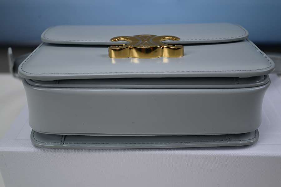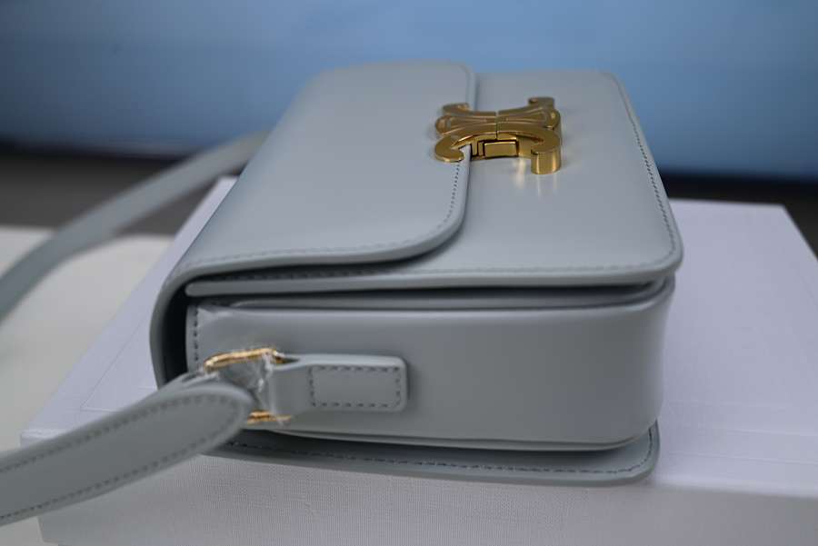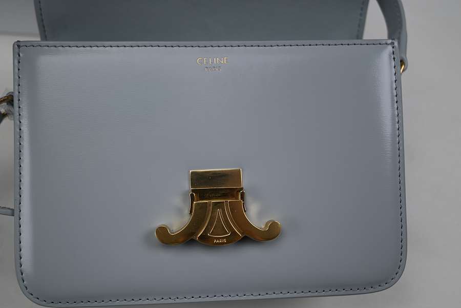 Celine Tên Triomphe Bag in Shiny Calfskin Soft Blue 19cm