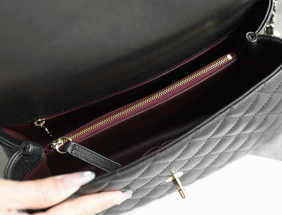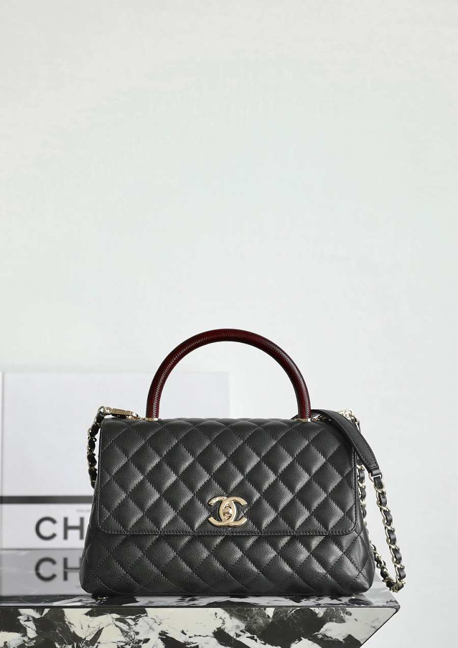 Chanel Black Quilted Caviar Leather and Lizard Embossed Small Coco Top Handle Bag 28.5x11x18cm