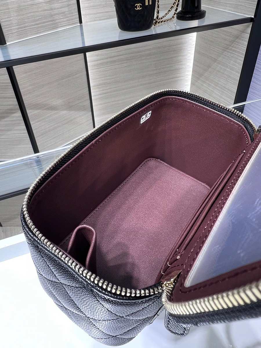 Chanel Black Quilted Caviar Long Vanity Case Gold Hardware 16x8x10cm