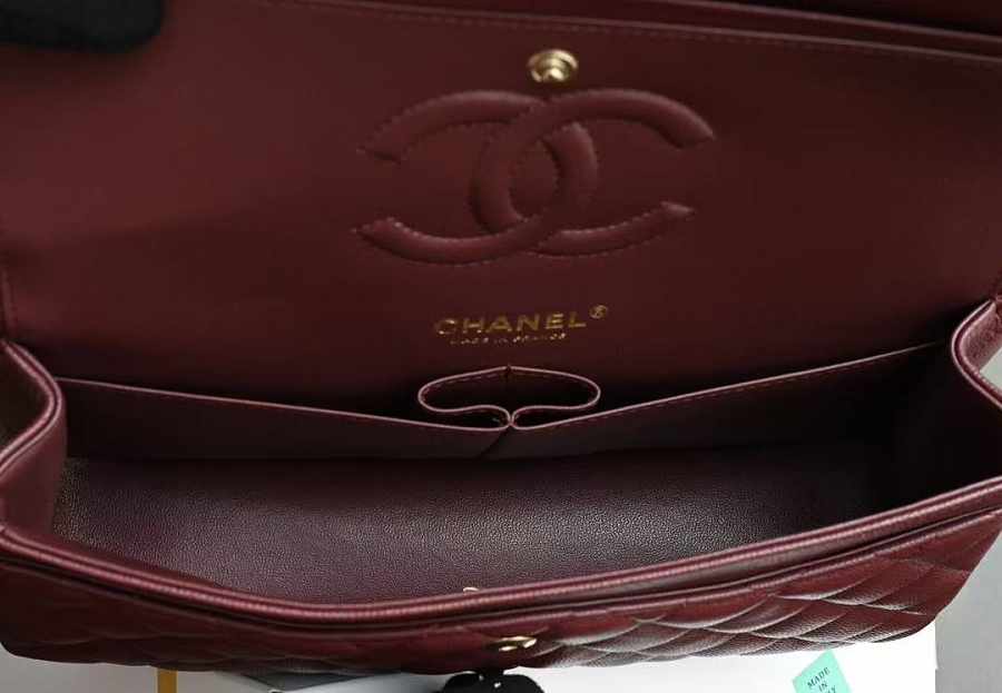 Chanel Flap Caviar Burgundy Bag Gold Hardware Size 15.5 x 25.5 x 6.5 cm