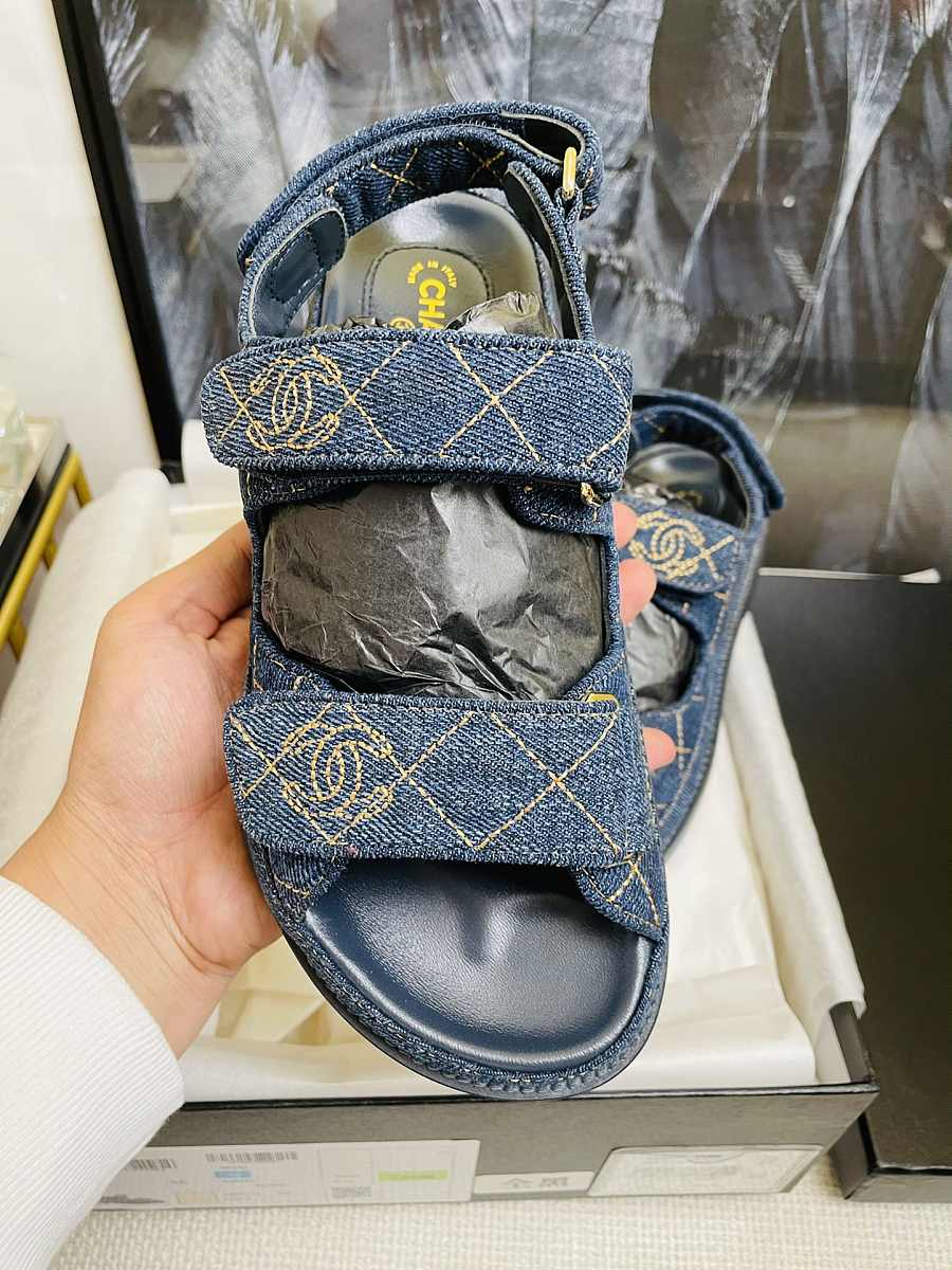 Chanel Lady Sandal Logo Gold Blue