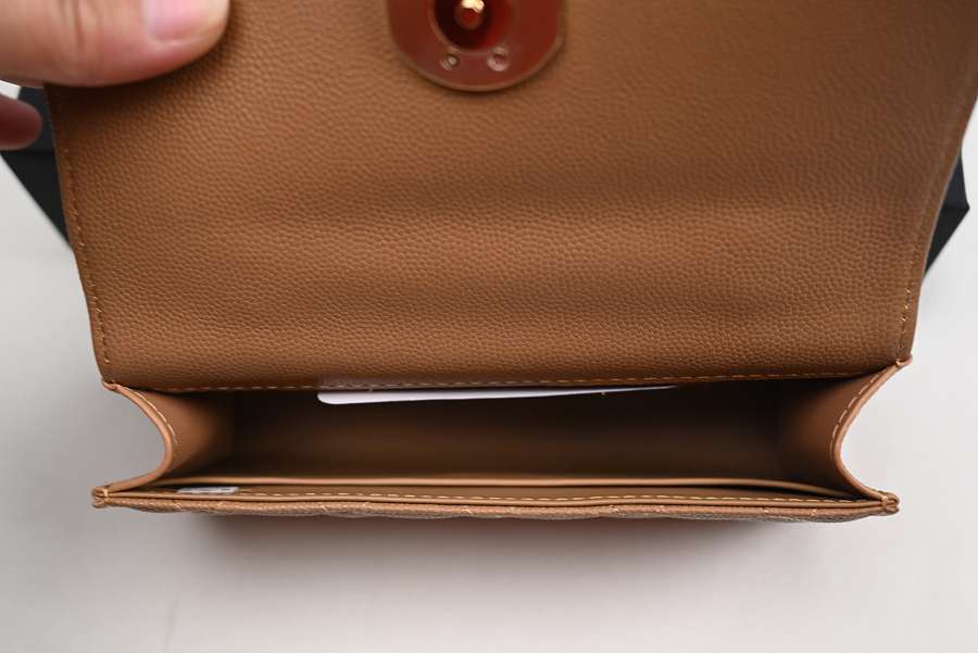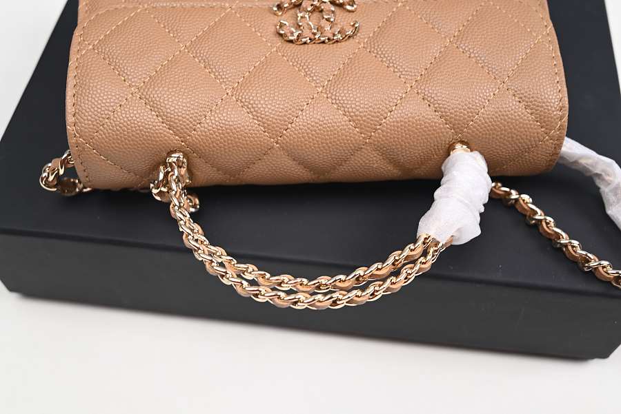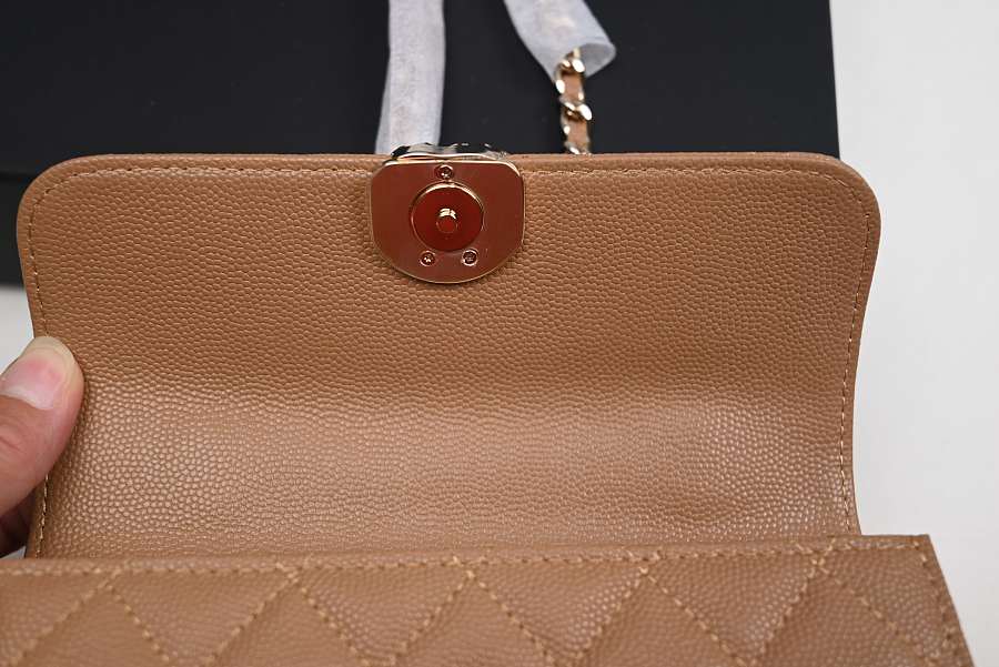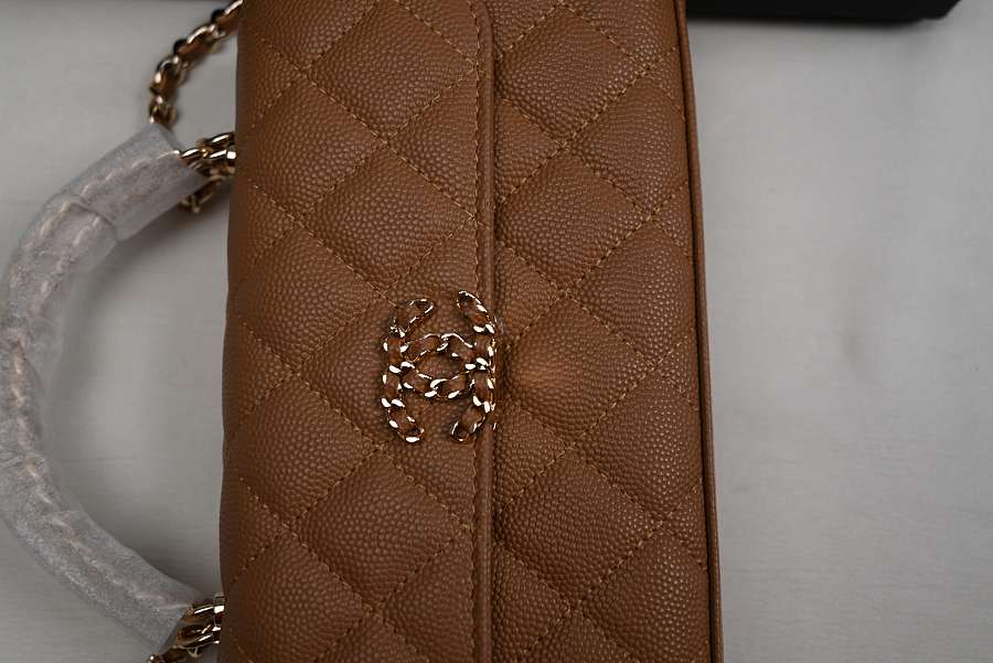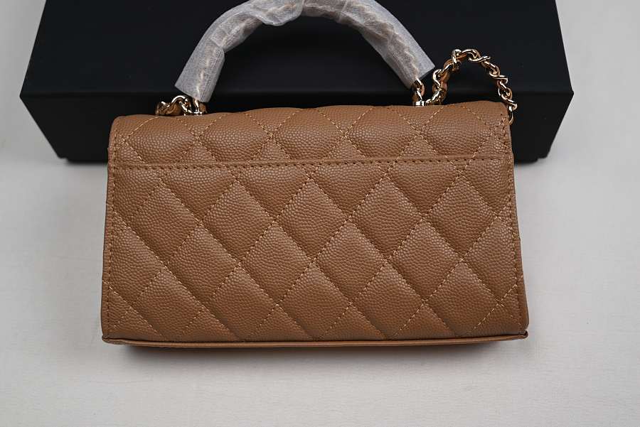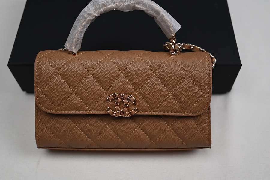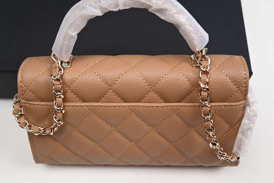 Chanel Long Mini Flap with Top Handle and Chain CC, Brown Caviar with Gold Hardware