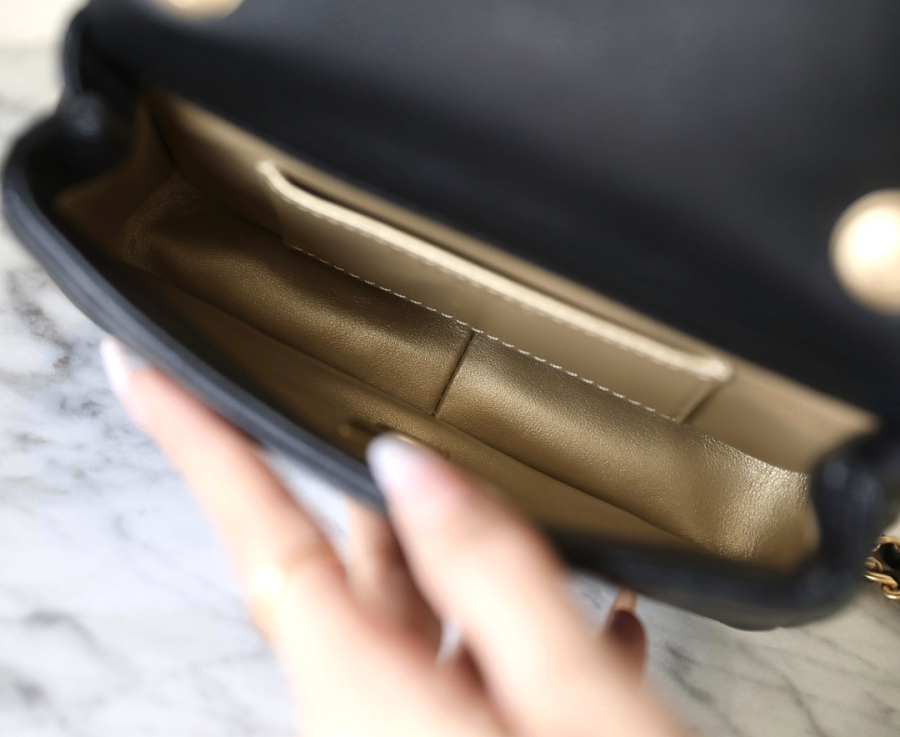 Chanel Mini Square Pearl Flap Bag Black Lambskin 11.5x17x5cm
