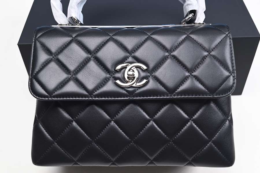 Chanel Small Trendy CC Black Lambskin Ruthenium Hardware