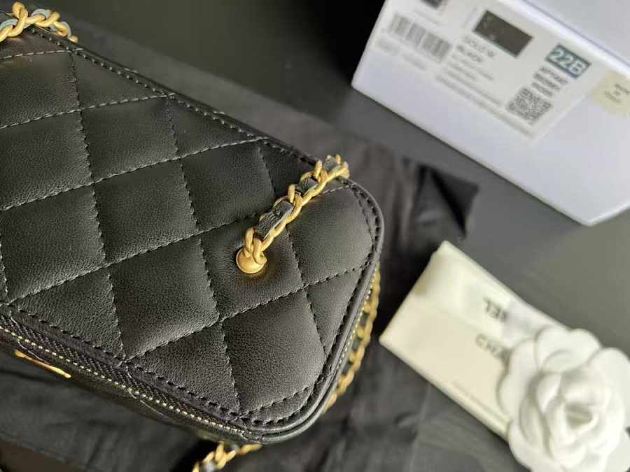 Chanel Vantiy Case Black Leather Bag Size 17*9.5*8cm