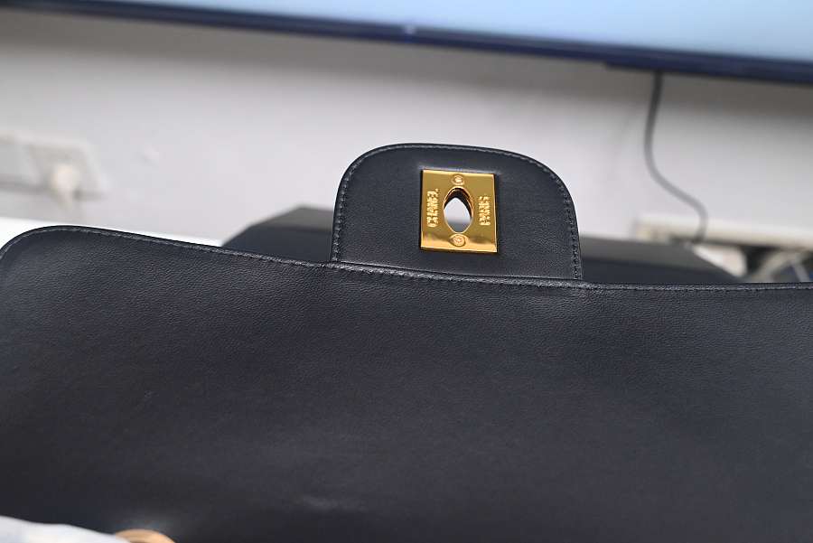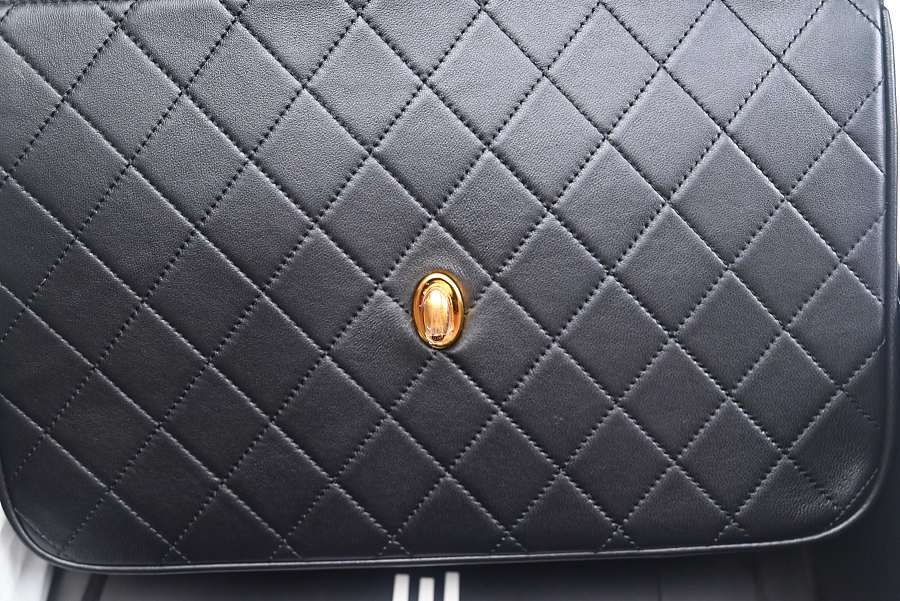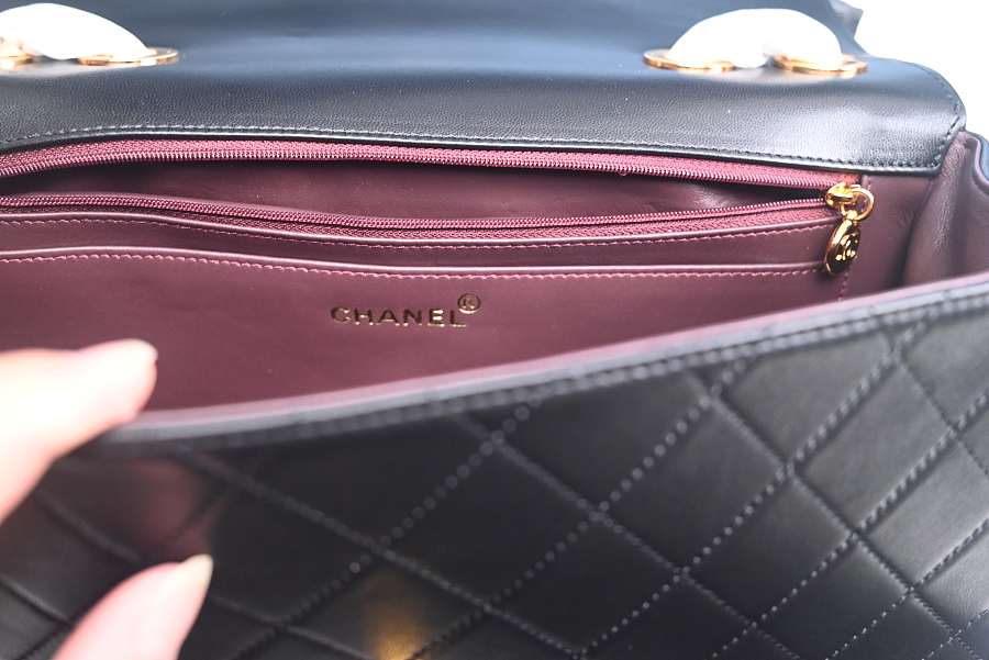 Chanel Vintage Classic Double Flap Quilted Lambskin Gold-tone Medium Black