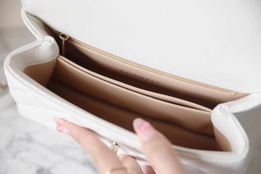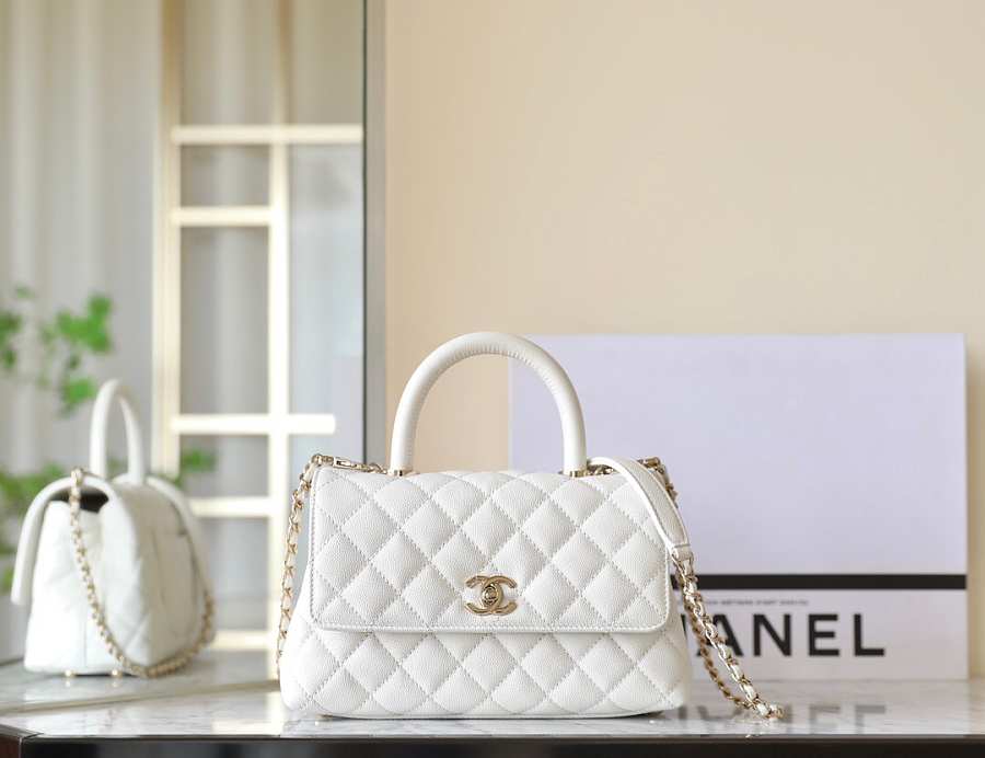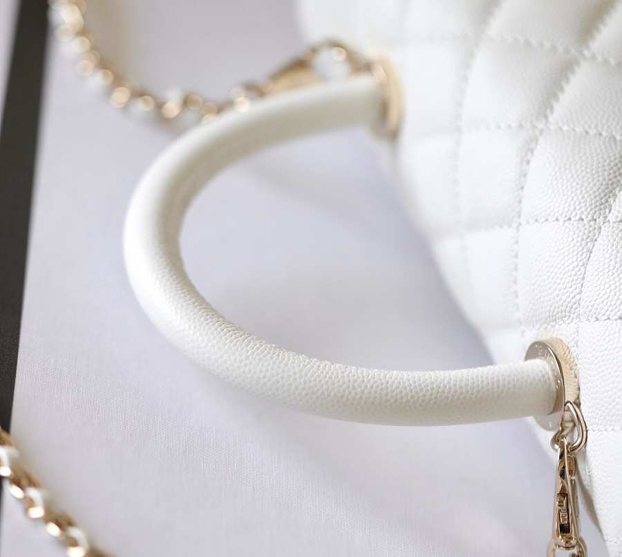 Chanel White Caviar Mini Coco Top Handle Bag Leather 22.5x16x9cm