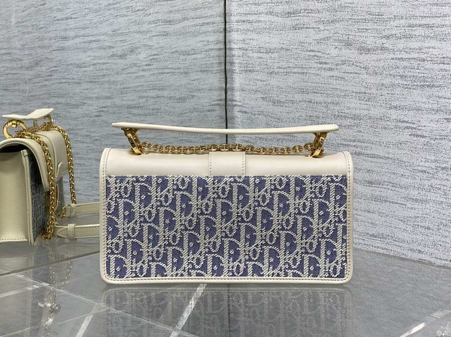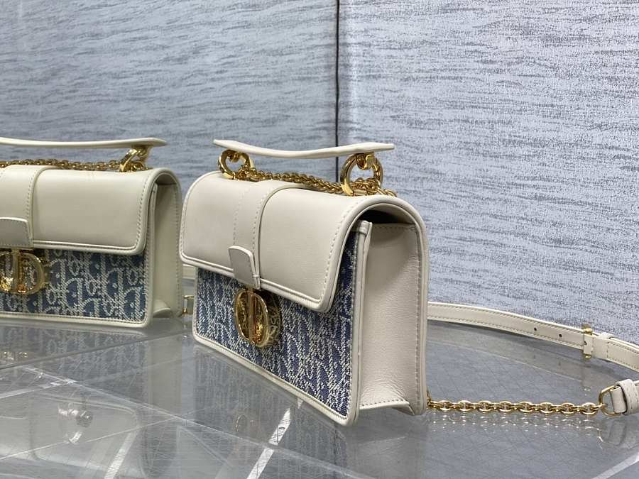 Dior 30 Montaigne Top Handle Bag Blue Dior Oblique Chambray with Raffia Effect and Light Biscuit Smooth Calfskin M9601UDFF_M925 25 x 13 x 4.5 cm