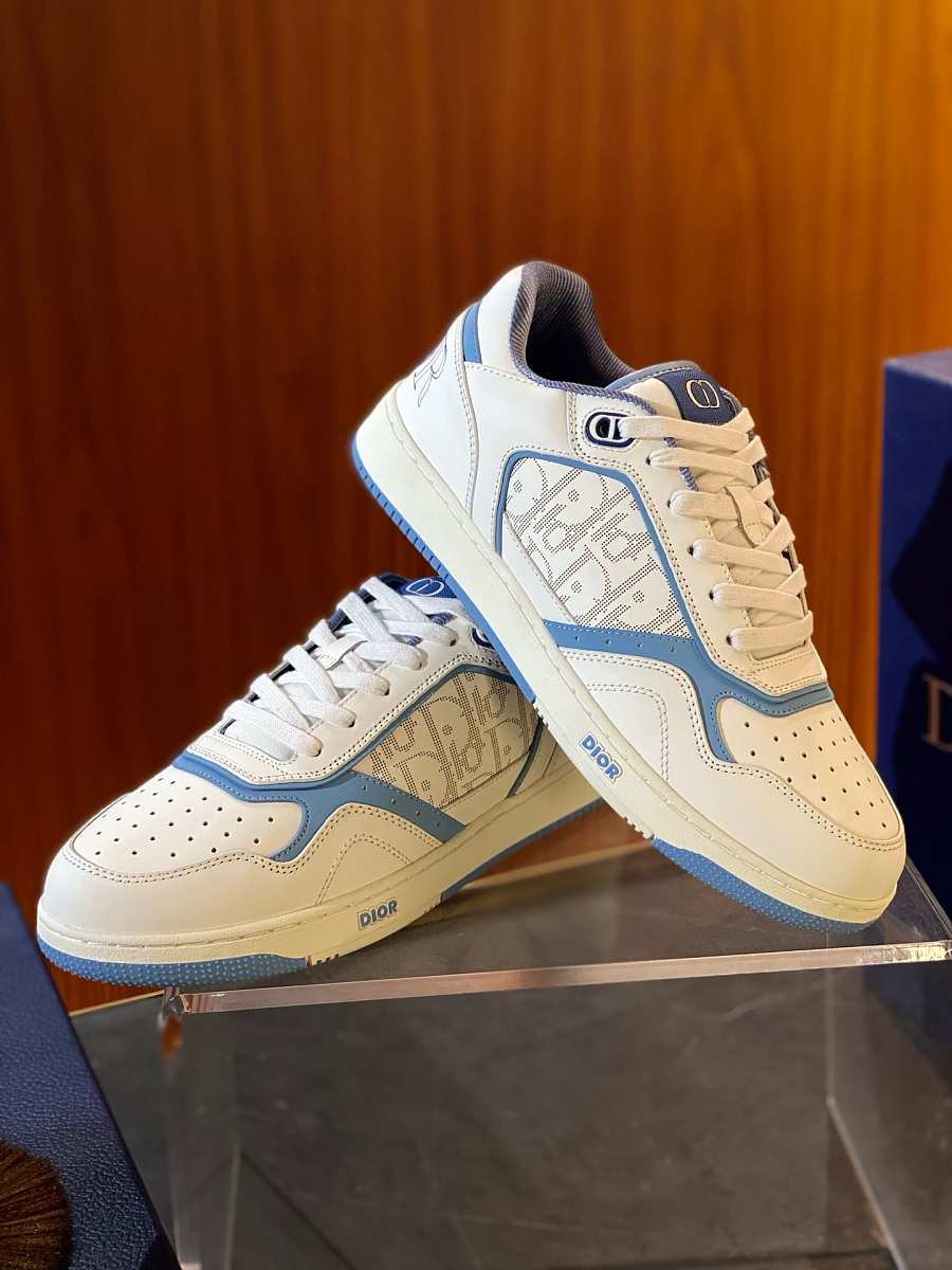 DIOR AND HYLTON NEL B27 Uptown Low-Top Sneaker White and Blue Smooth
