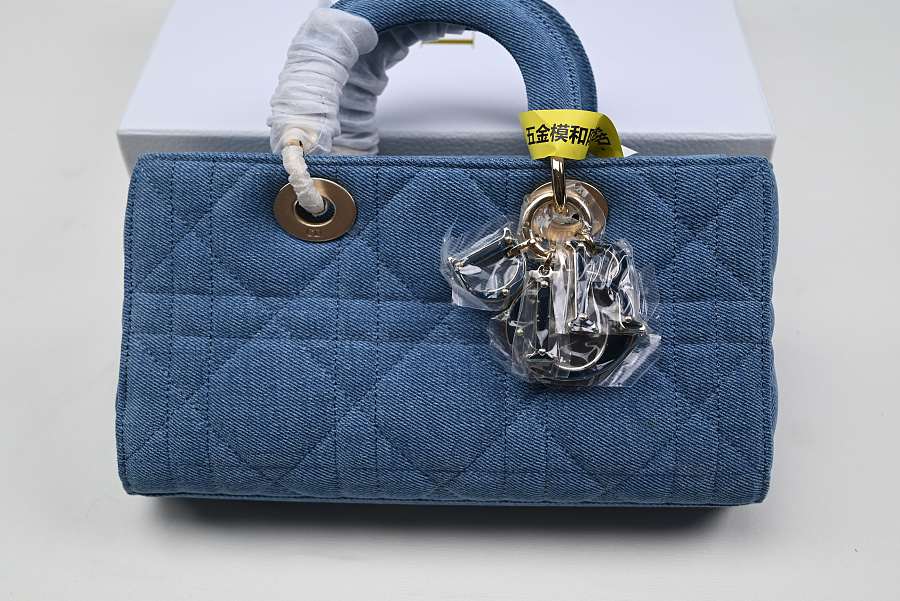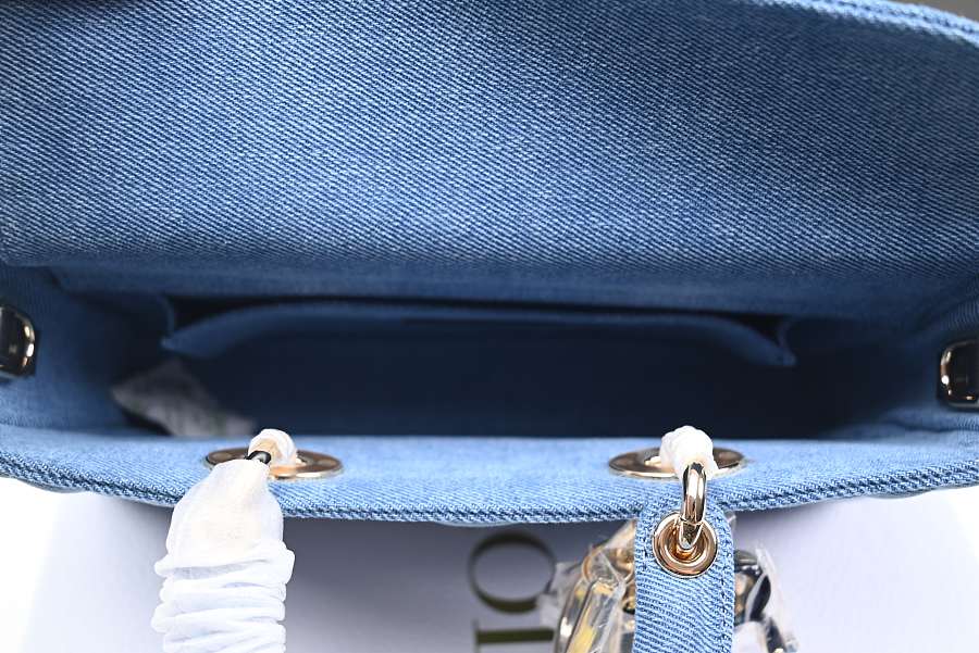 Dior Lady D-Joy Denim Macrocannage Light Blue 22x12x6cm