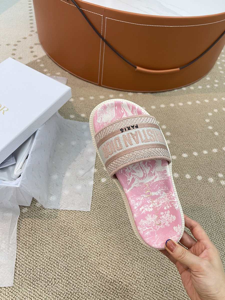 DWAY SLIDE Bright Pink Toile de Jouy Embroidered Cotton KCQ550TJU_S76W