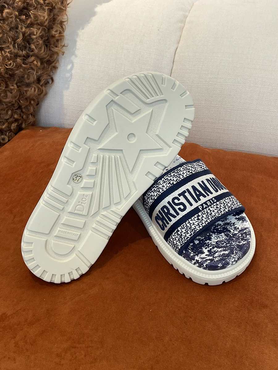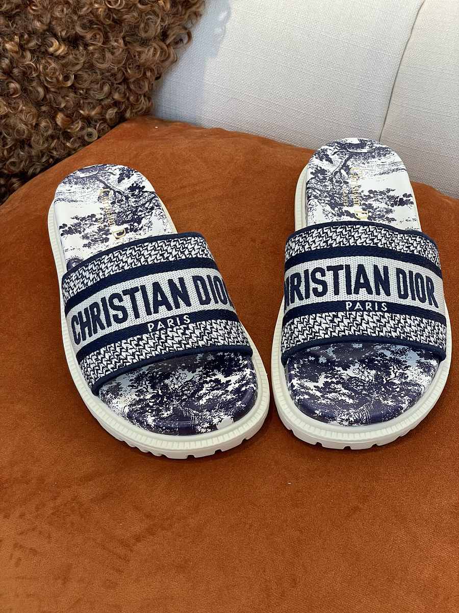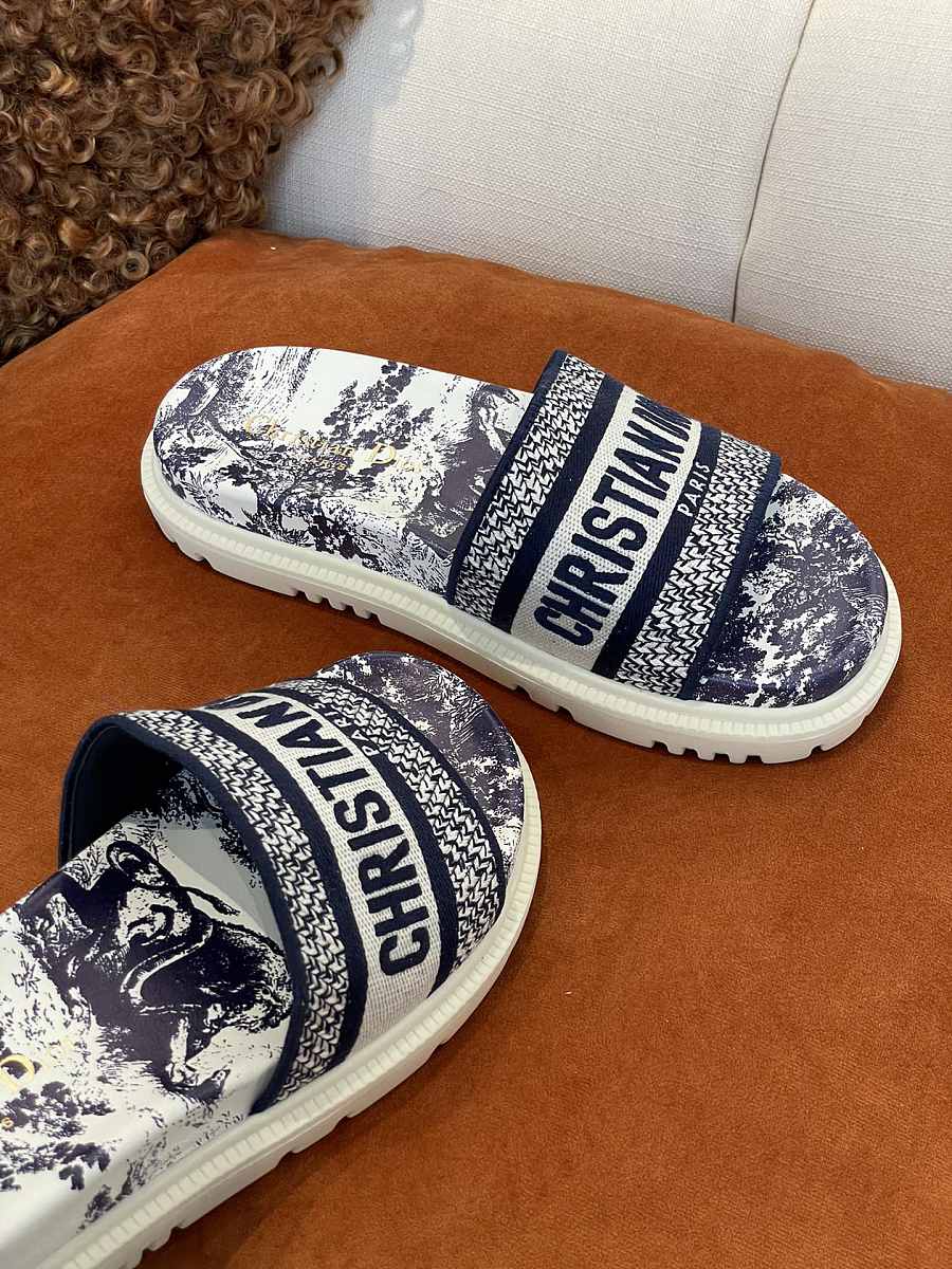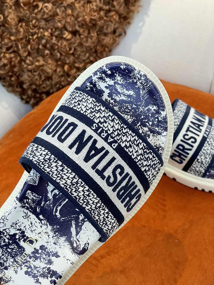 DWAY SLIDE Deep Blue Toile de Jouy Flowers Embroidered Cotton KCQ550FLJ_S36W