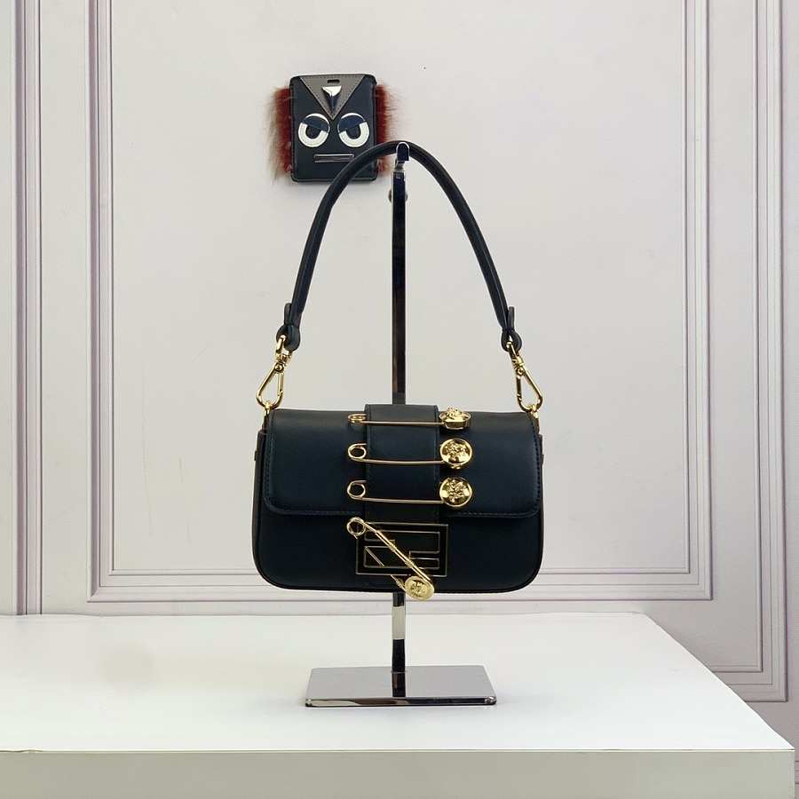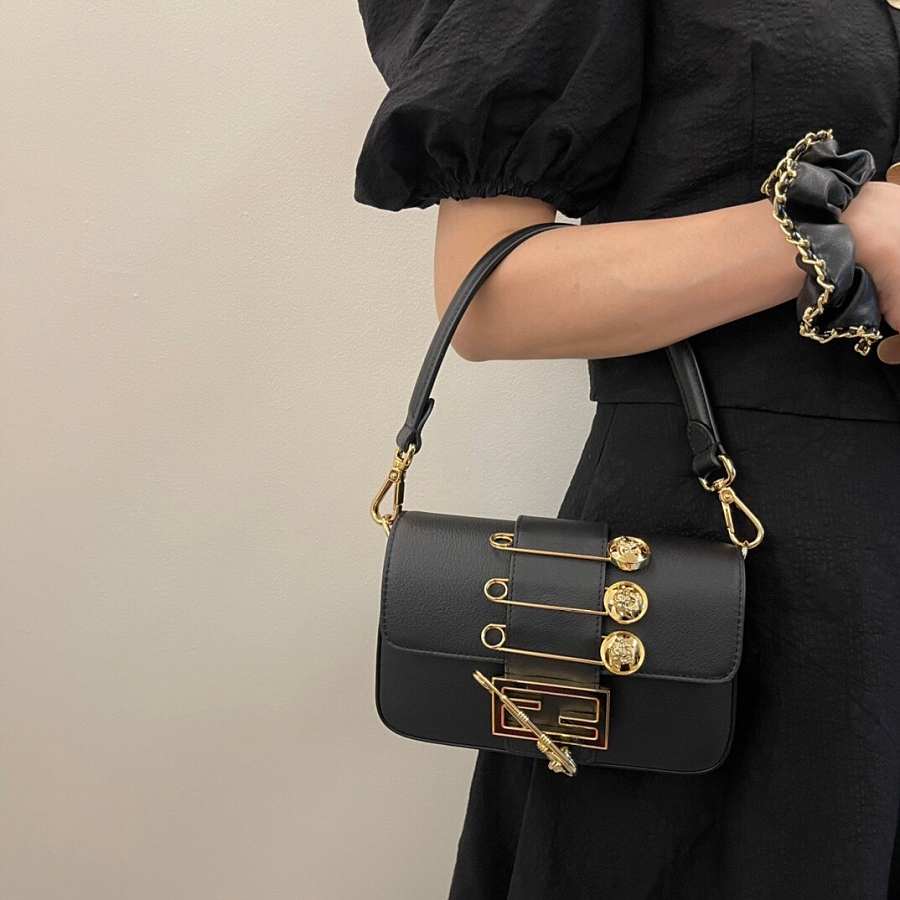Fendi Fendace Brooch Mini Baguette Black 20x13x5cm