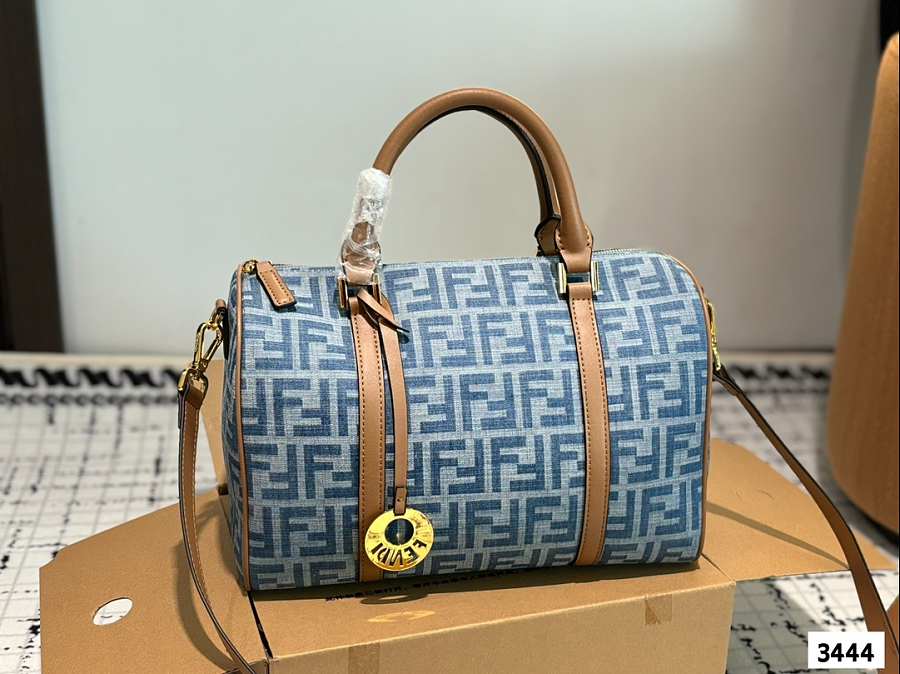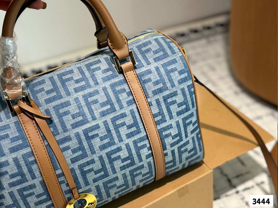 Fendi Forever Zucca Boston Bag Blue 30cm