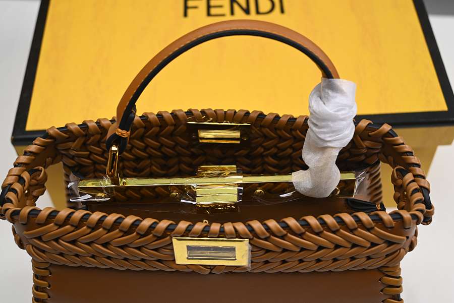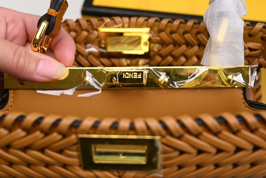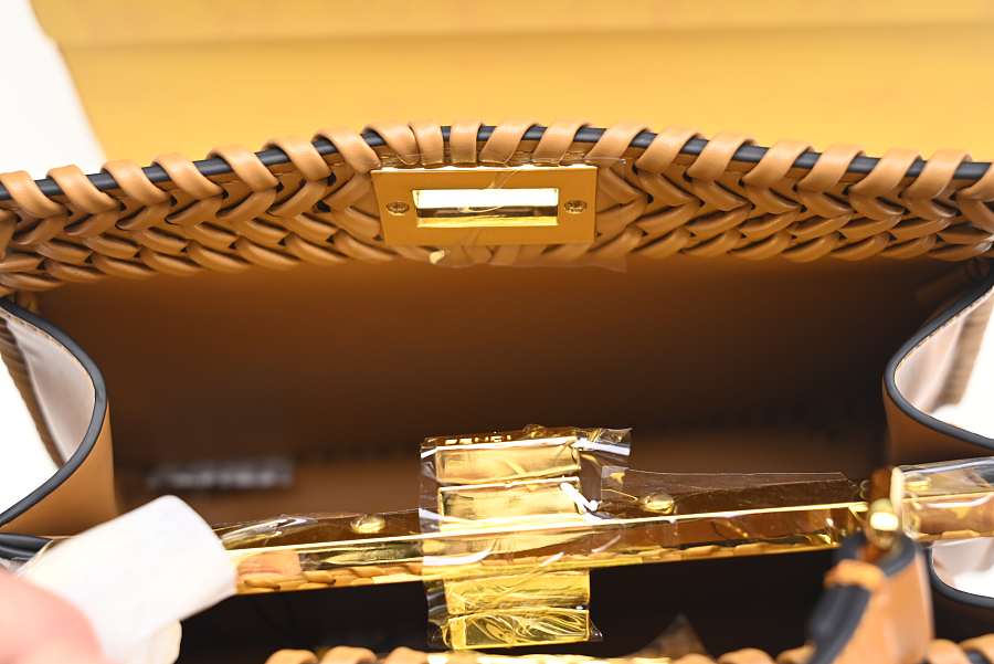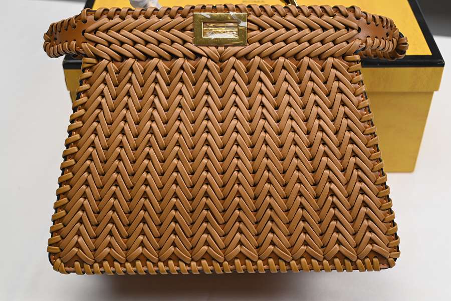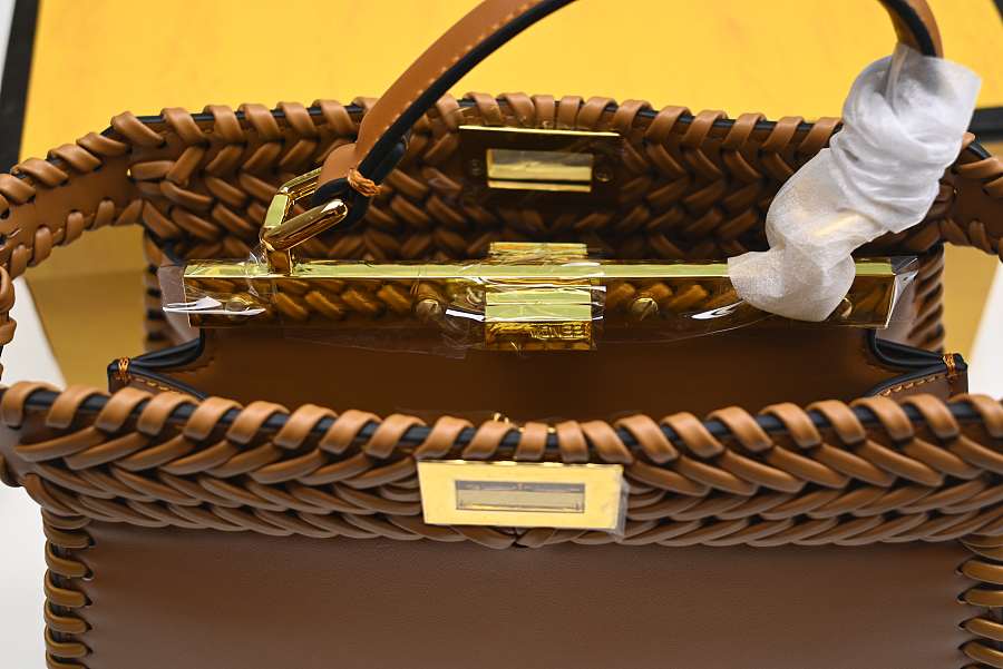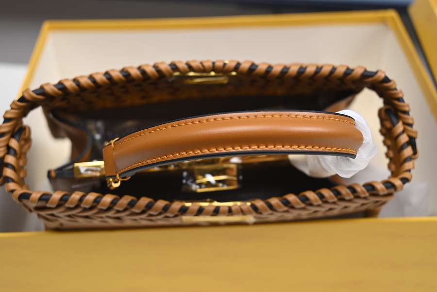 Fendi Peekaboo ISeeU Small Camellia interlace leather bag 21x27x11cm