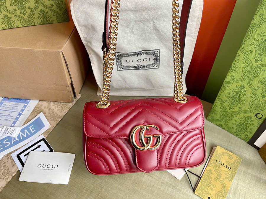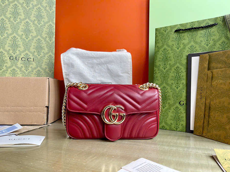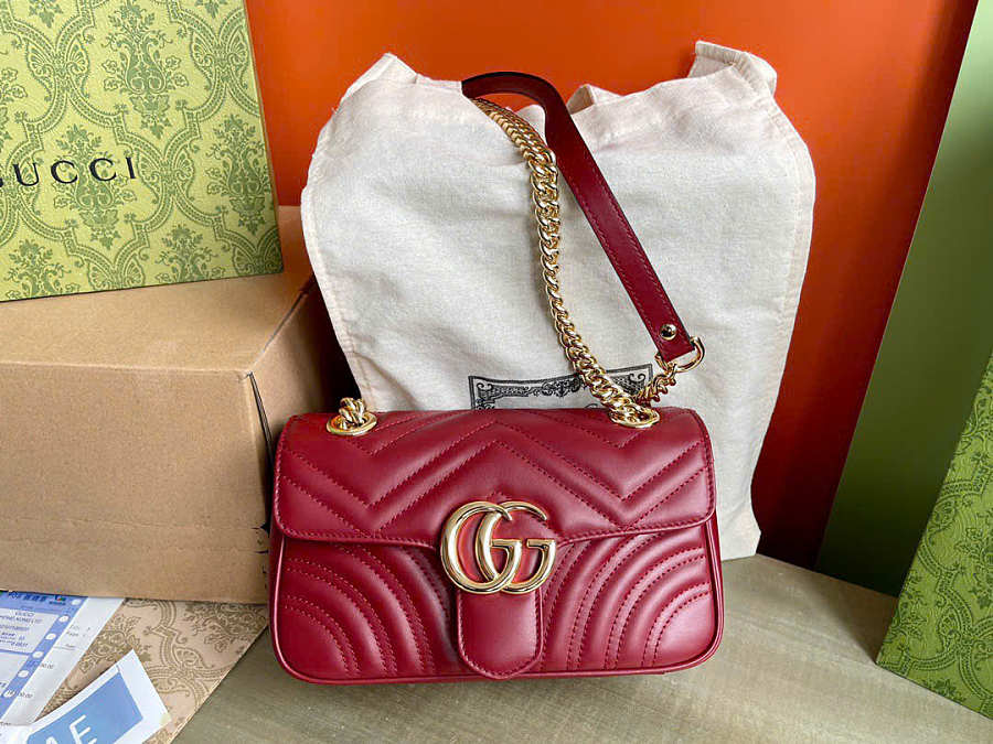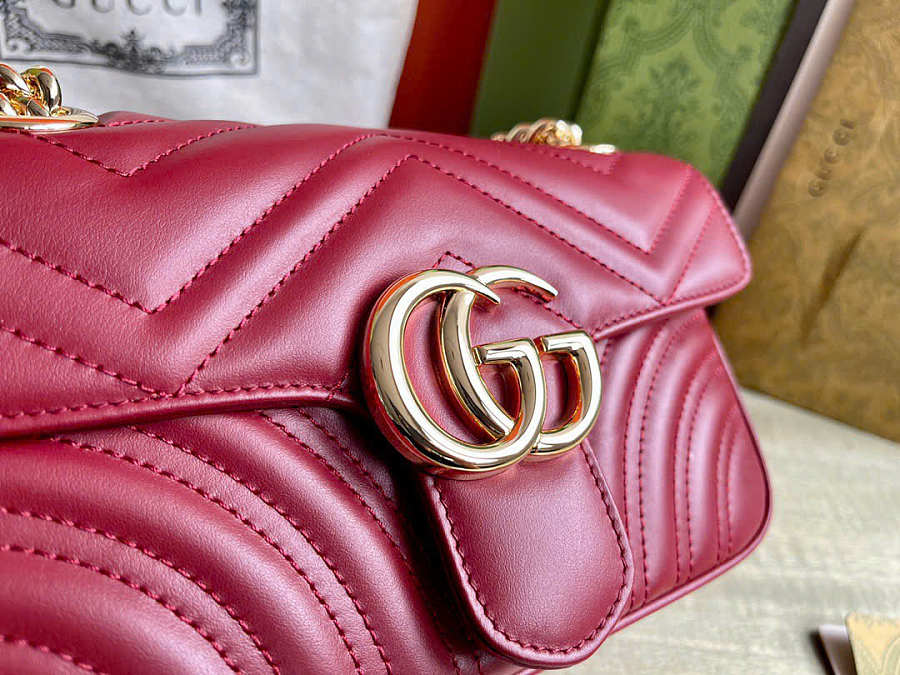 GG Marmont mini shoulder bag - Rosso Ancora matelassé chevron leather 22cm