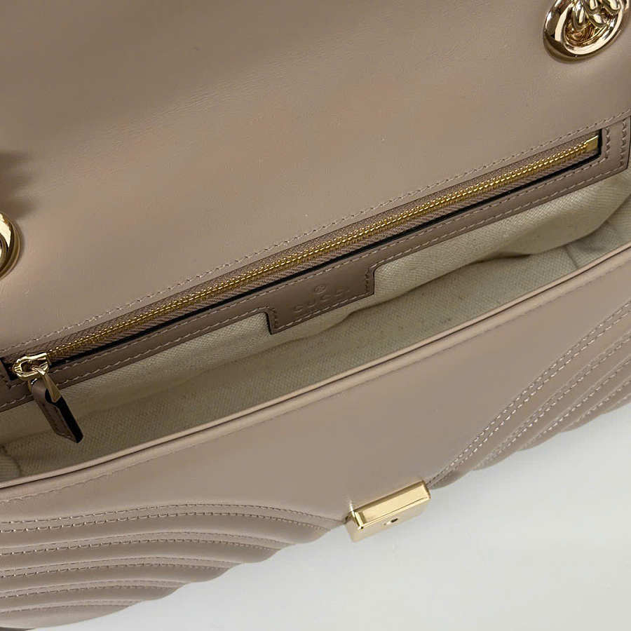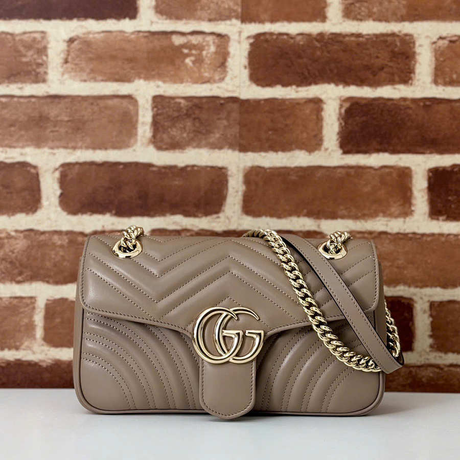 GG Marmont small shoulder bag - Taupe matelassé chevron leather 26cm