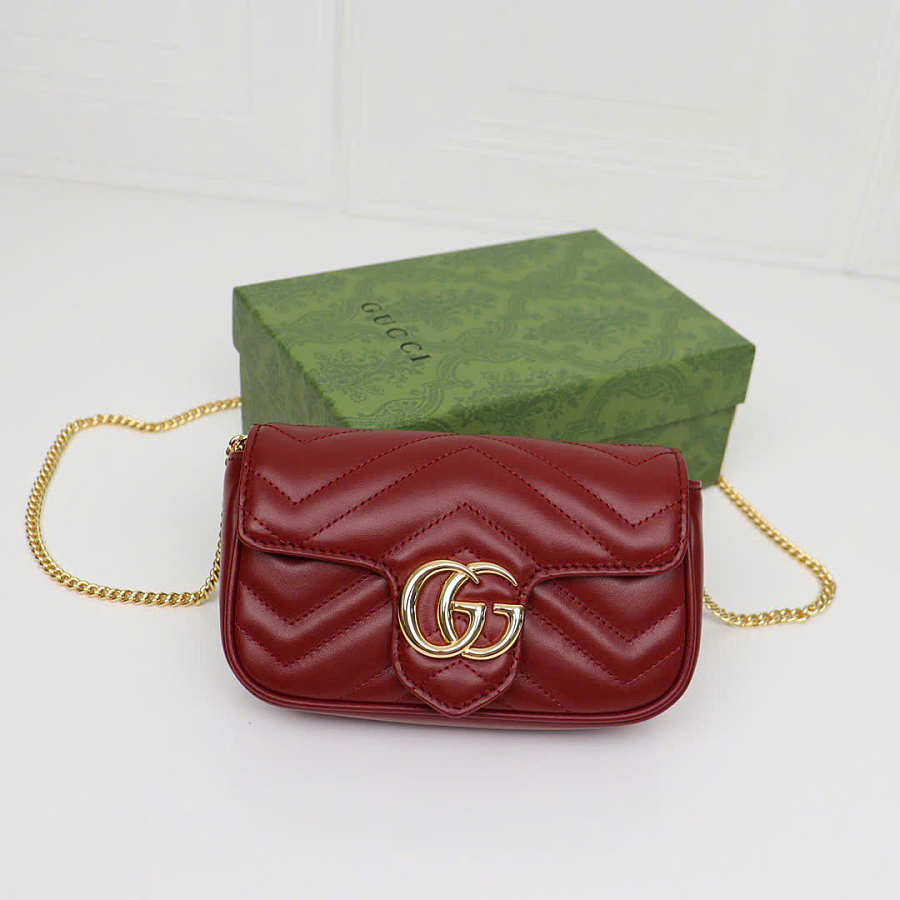 GG Marmont super mini bag - Rosso Ancora red matelassé chevron leather 16cm