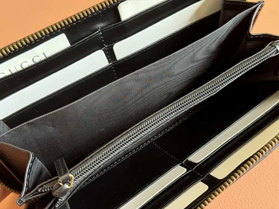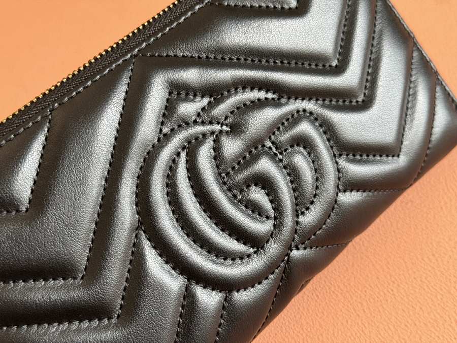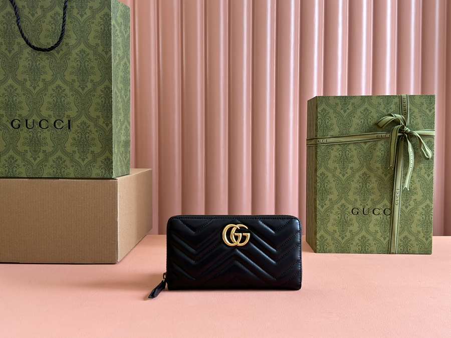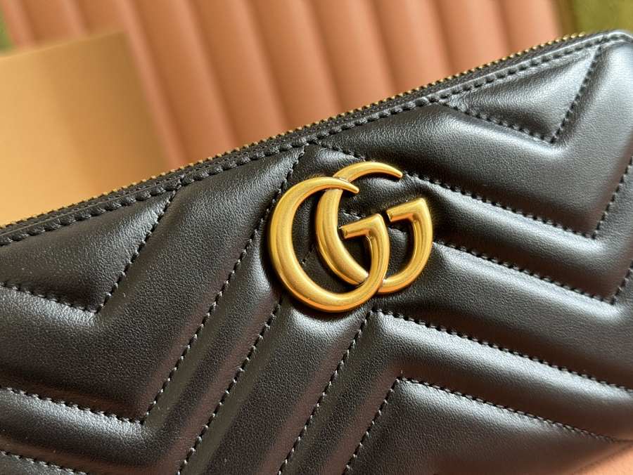GG Marmont zip around wallet in Black Leather 19x10.5x2cm