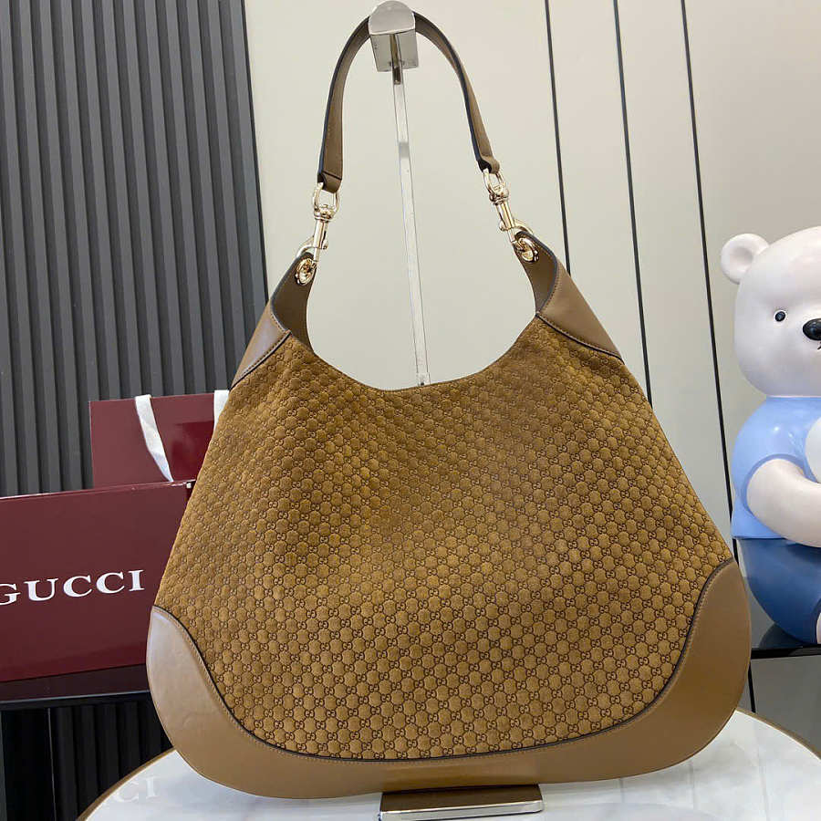 Gucci B small shoulder bag - Brown micro GG suede 41cm