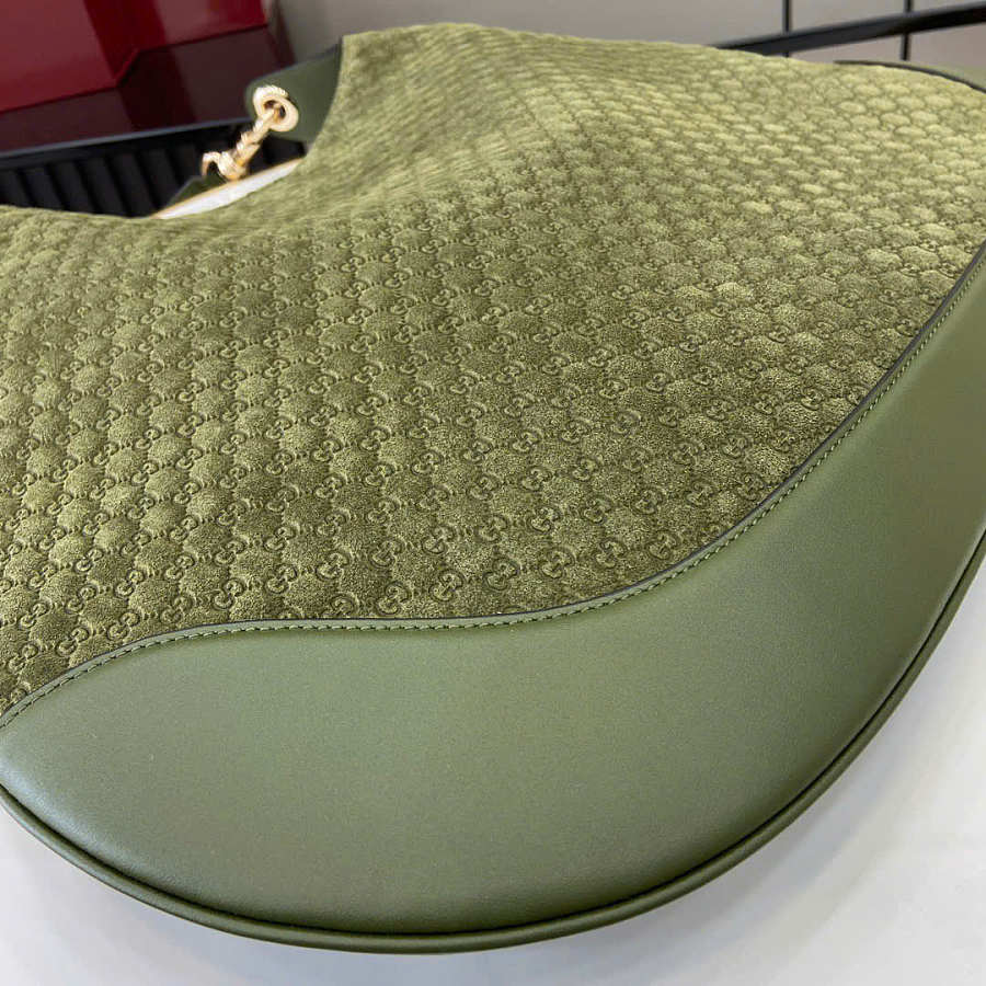 Gucci B small shoulder bag - Dark green micro GG suede 41cm