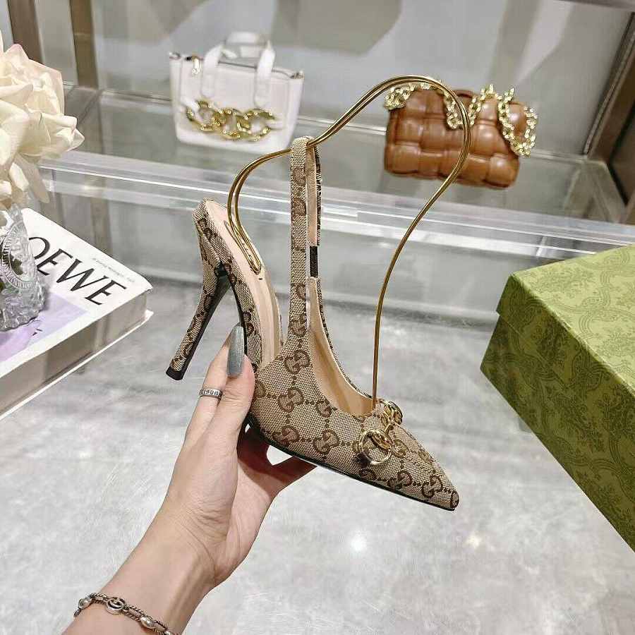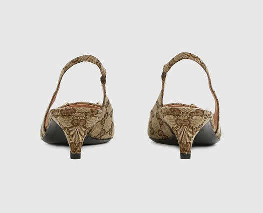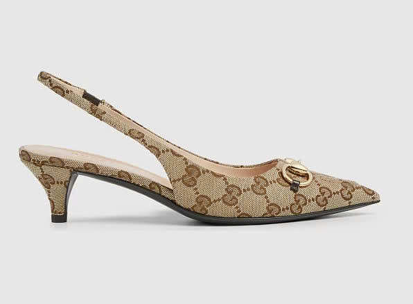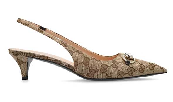 Gucci Horsebit Slingback Pumps Beige Canvas (Women's) 782627 2HK80 9763