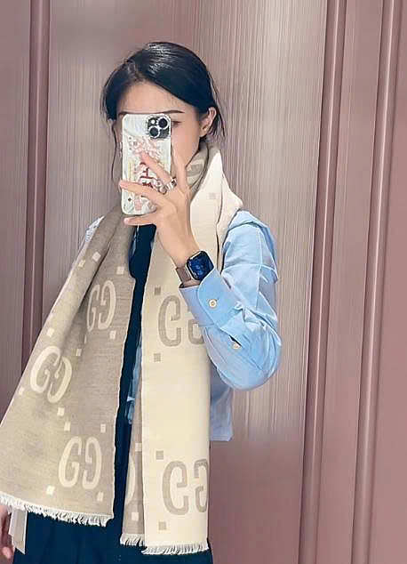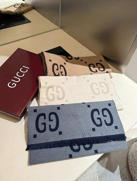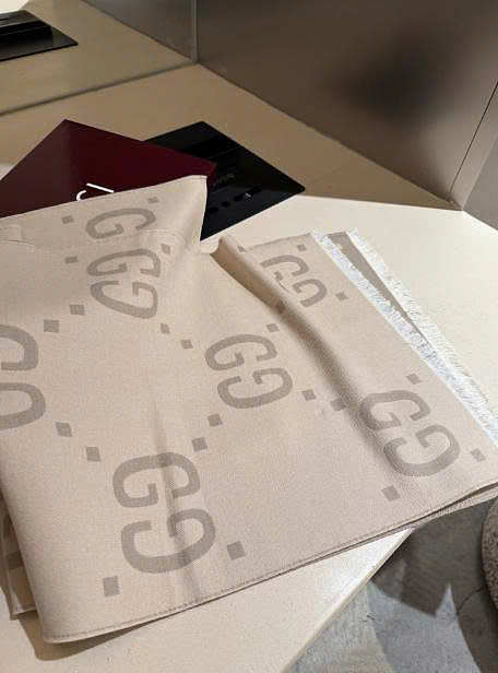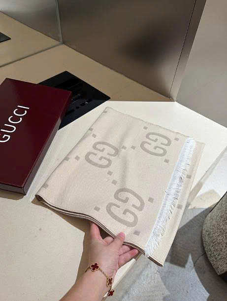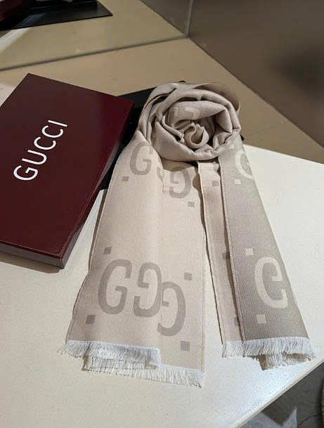 Gucci Jacquard Wool Silk Scarf Ivory And Beige 495592 4G350 9279 W35cm x L190cm