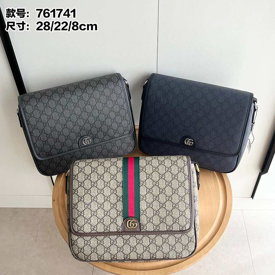Gucci Men Ophidia Medium Messenger Bag Beige Ebony 28x22x8cm
