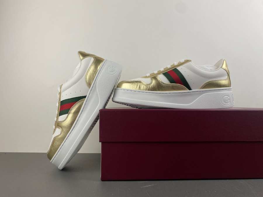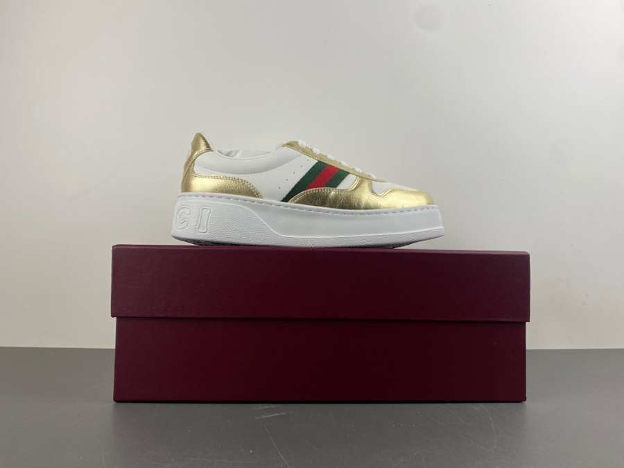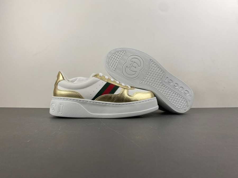 Gucci Women's chunky sneaker golden metallic leather 848307 AAFMN 8044