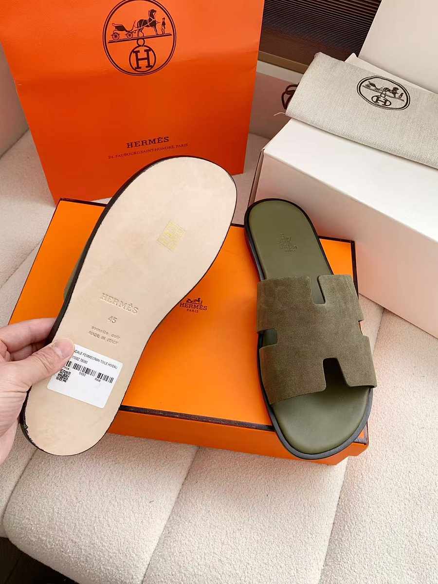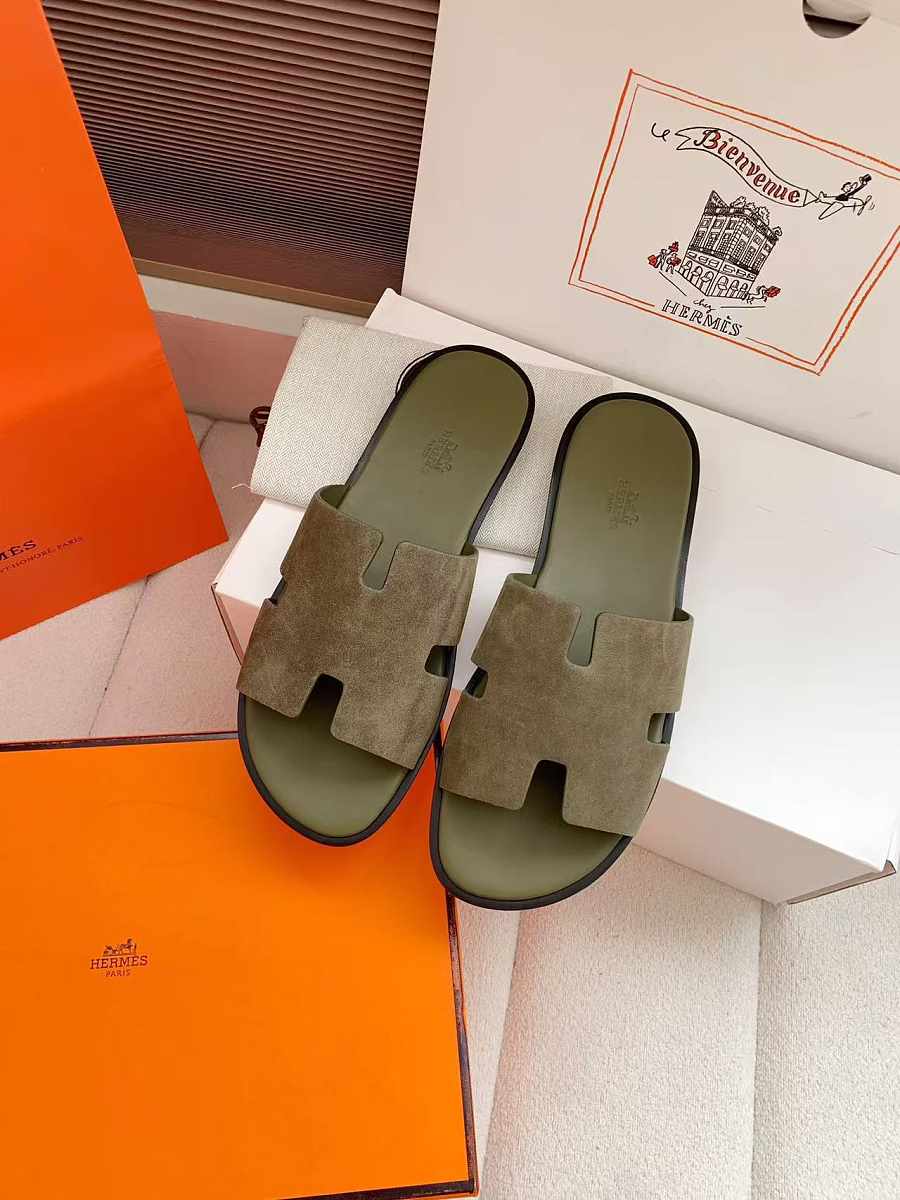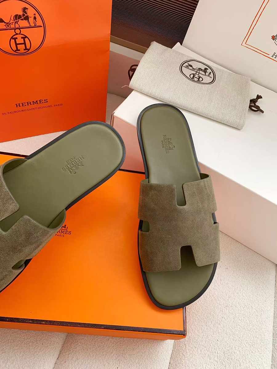 Hermès Izmir sandals in olive green suede