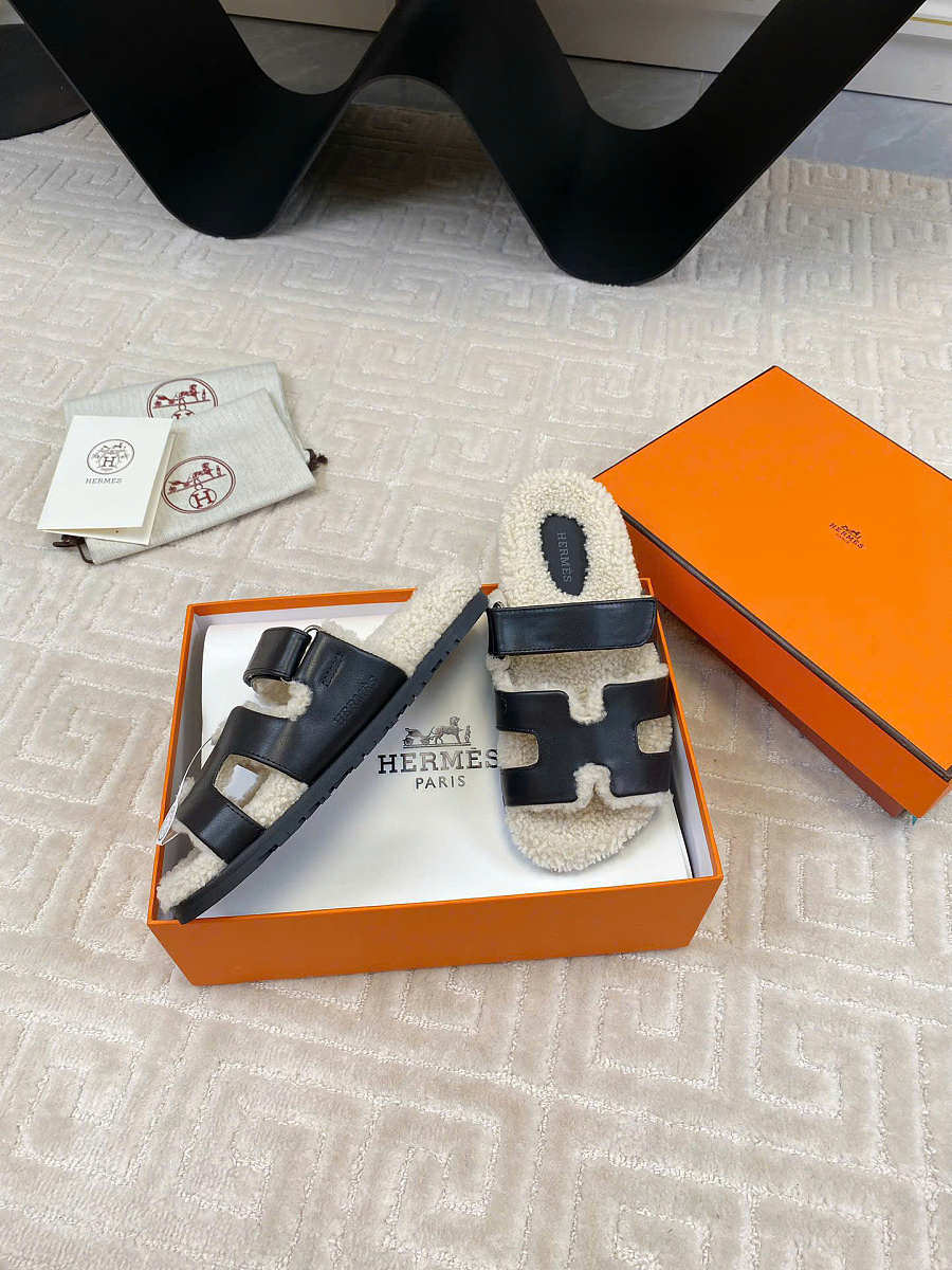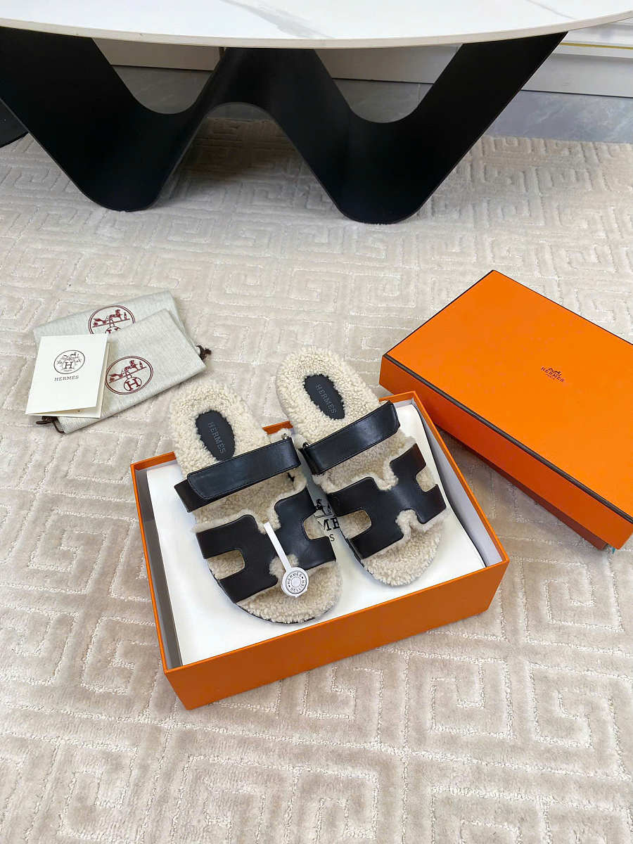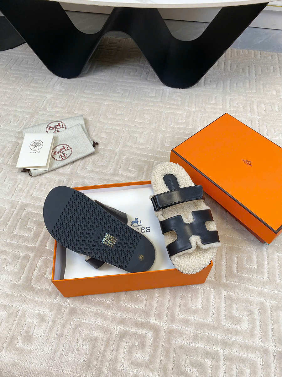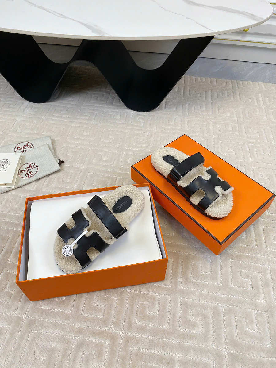 Hermes Chypre Noir/Ecru Calfskin Wool H222865Z