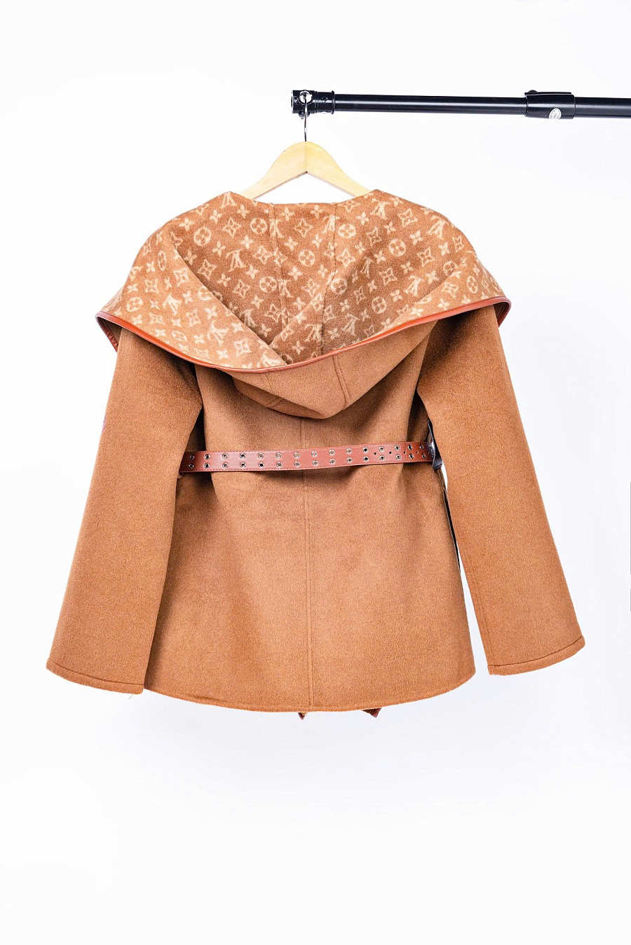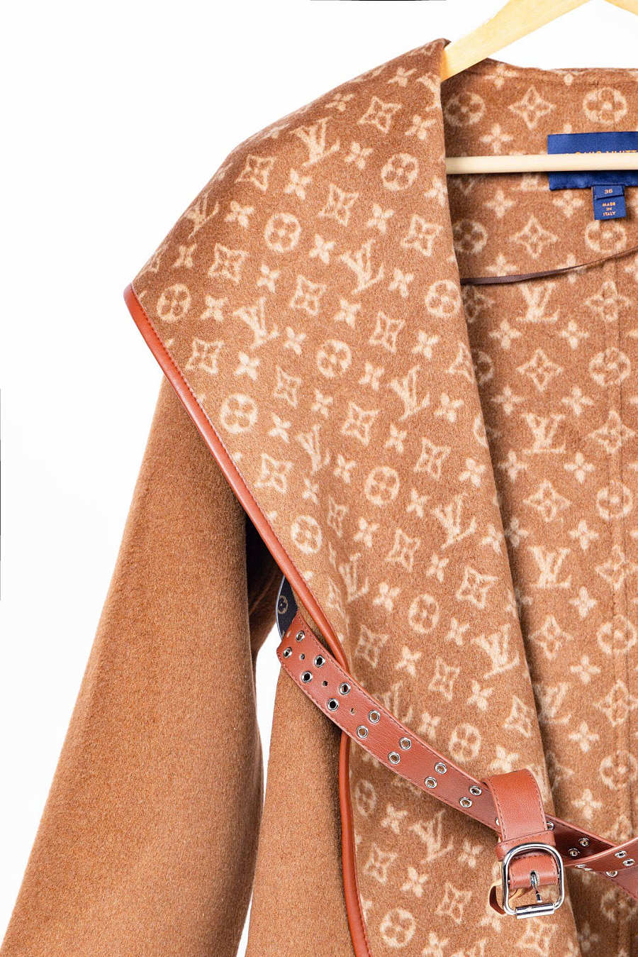 Louis Vuitton Belted Double Face Hooded Wrap Coat Camel 1A99K5