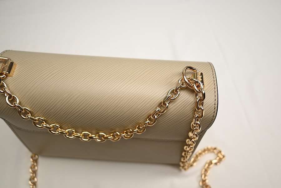 LV Twist MM Epi leather Quartz White 9.1 x 6.7 x 3.7 inches