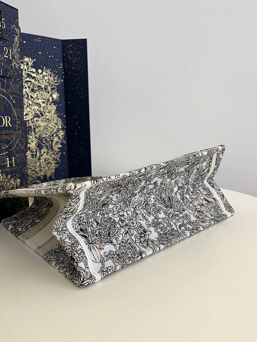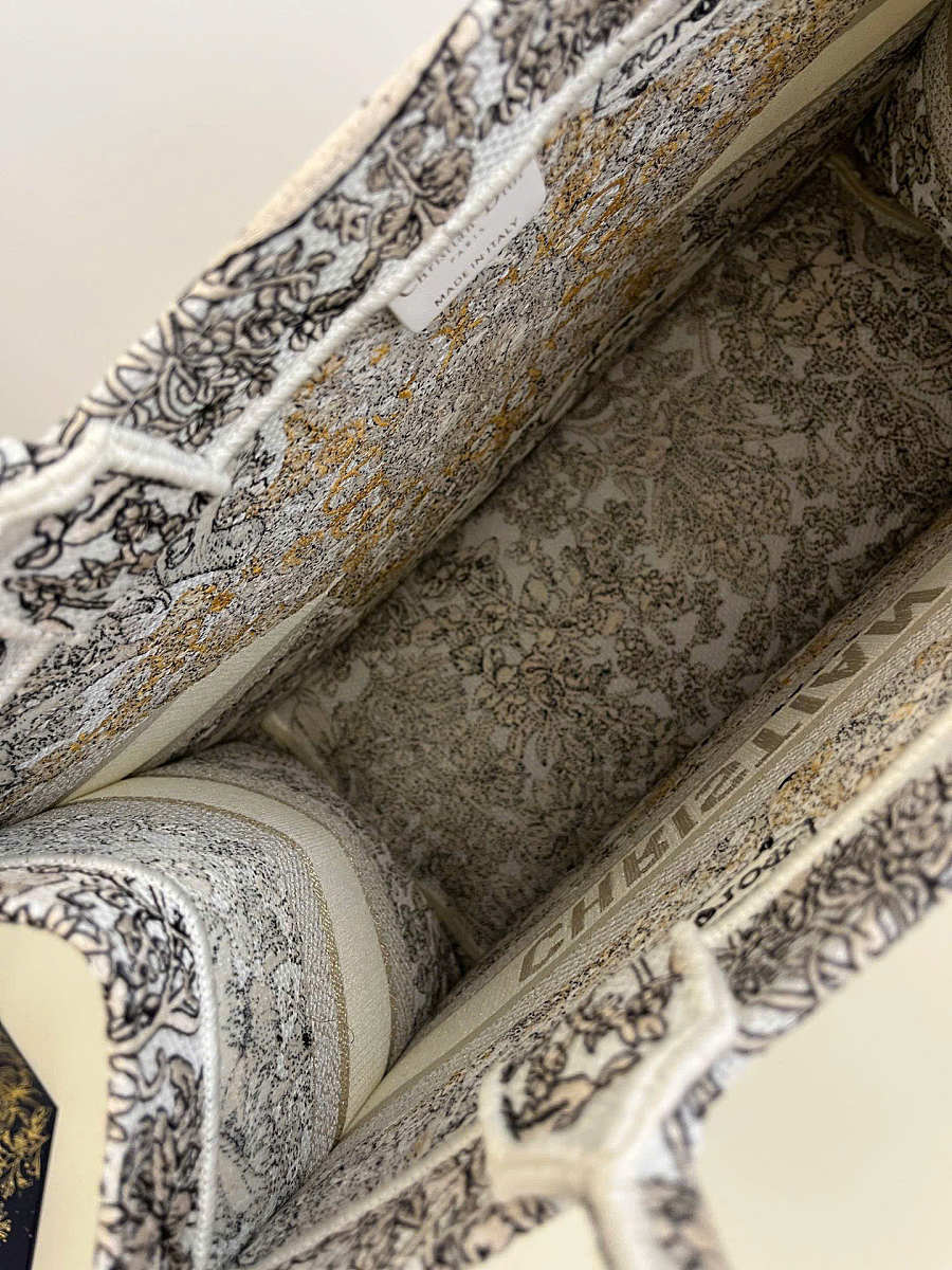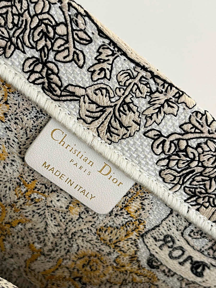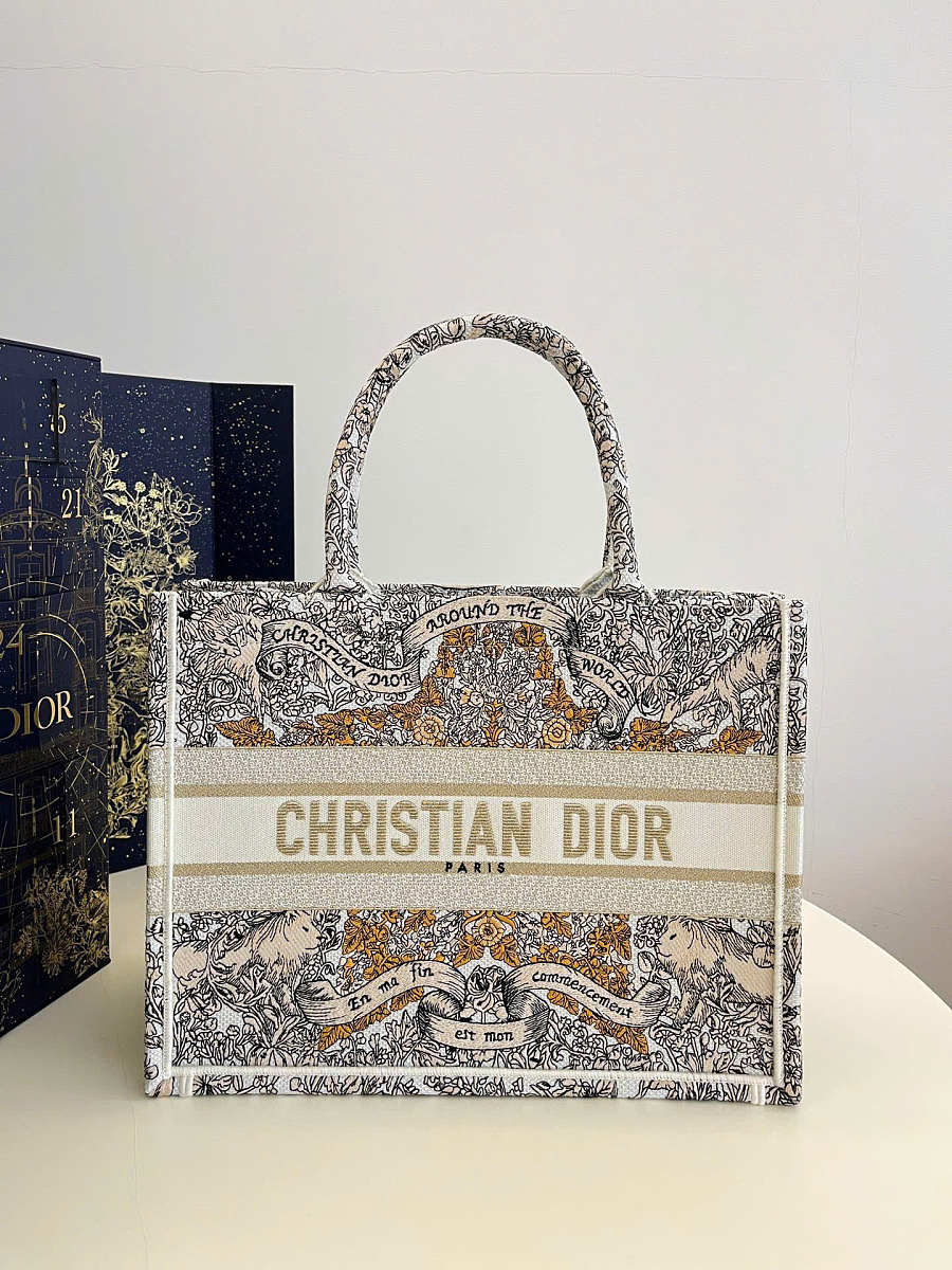 Medium Dior Book Tote Latte Embroidery with Gold-Tone Dior Around the World Motif 36 x 27.5 x 16.5 cm