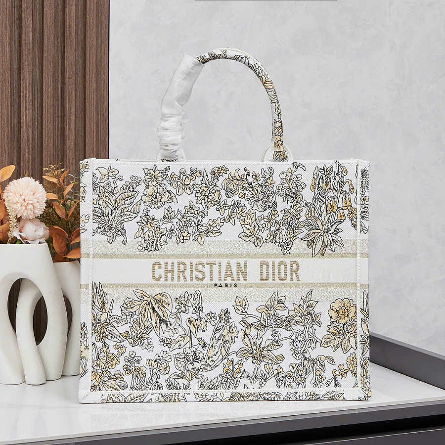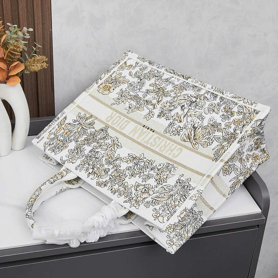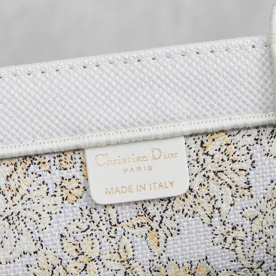 Medium Dior Book Tote Latte Embroidery with Gold-Tone Millefiori Unicorn Motif 36 x 27.5 x 16.5 cm