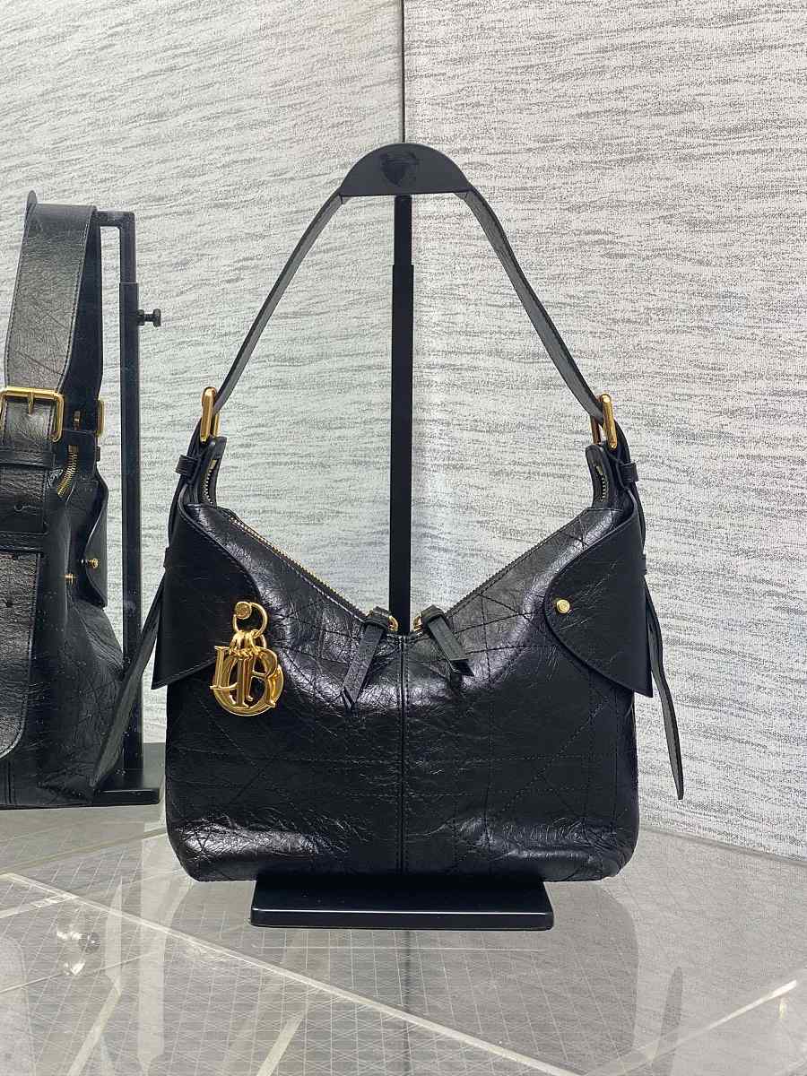 Medium Dior Voyage Bag Black Flat Macrocannage Grained Calfskin 28x18x12cm