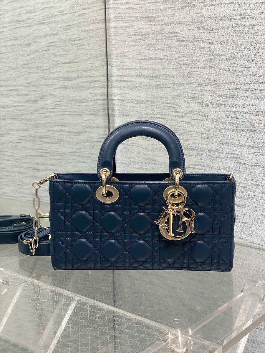 Medium Lady D-Joy Bag Deep Ocean Blue Cannage Lambskin 26 x 13.5 x 5 cm