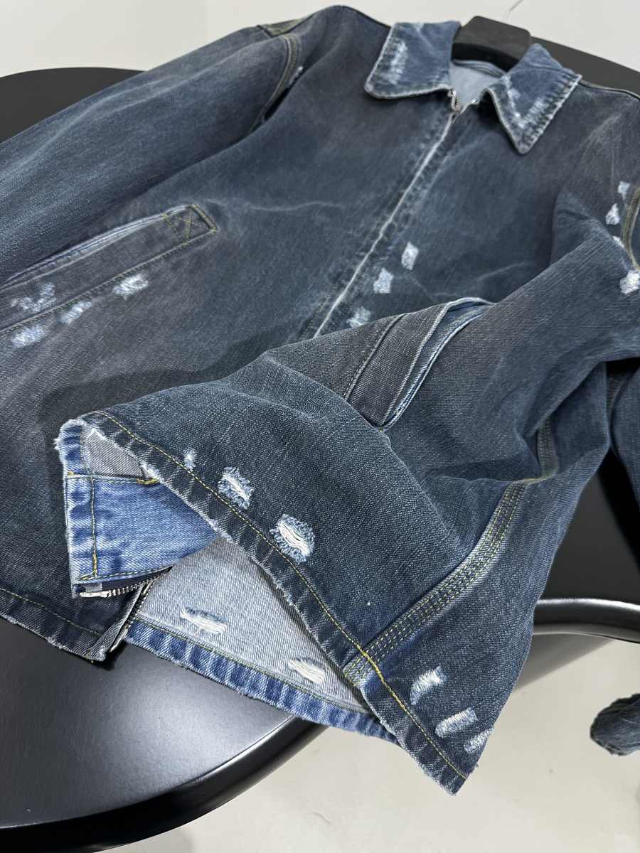 Men's Balenciaga Zip-up Denim Jacket in Blue