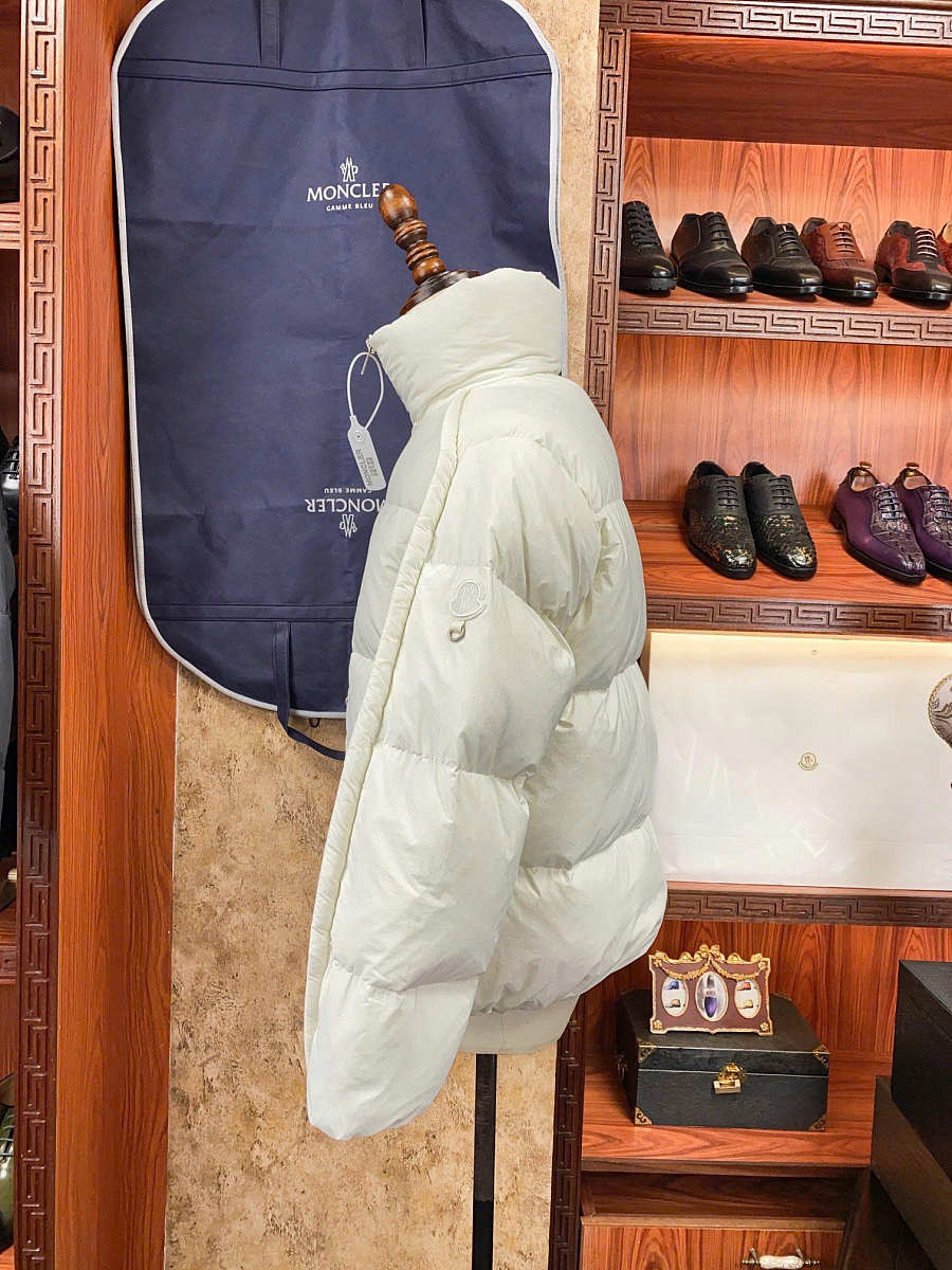 Moncler Boed Hooded Shearling-Trimmed Short Down Jacket White K20931A00099595FE