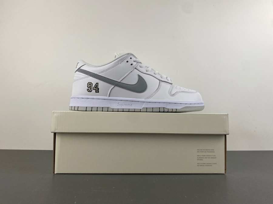 Nike SB Dunk Low Supreme 94 White Metallic Silver HQ8487-100