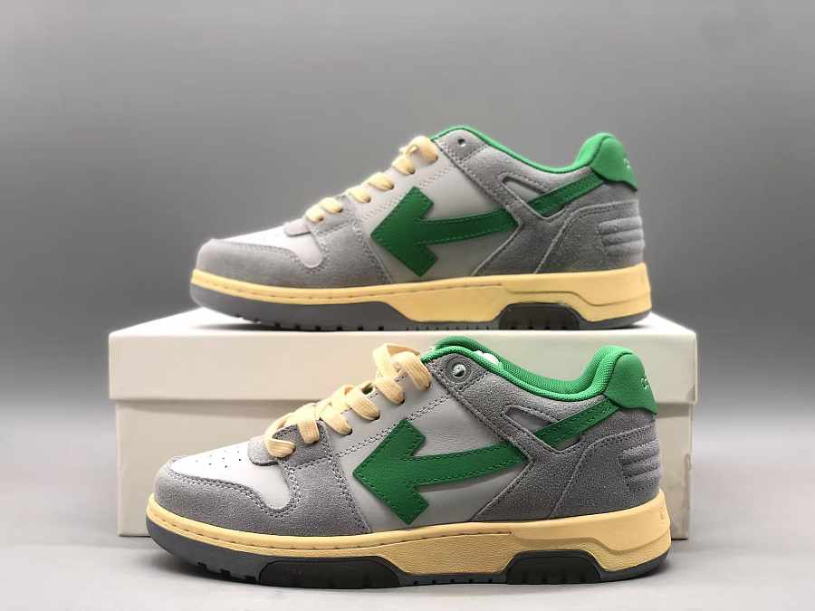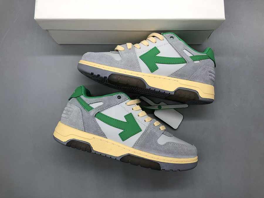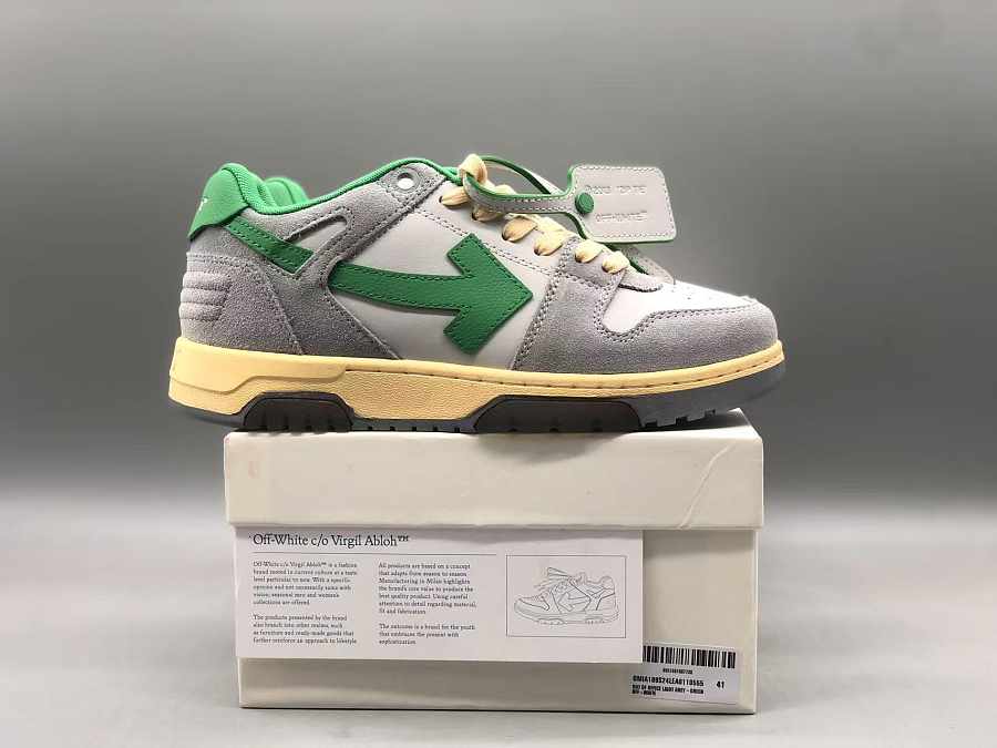 OFF-WHITE Out Of Office OOO Low Tops Light Grey Green OMIA189S24LEA0110555