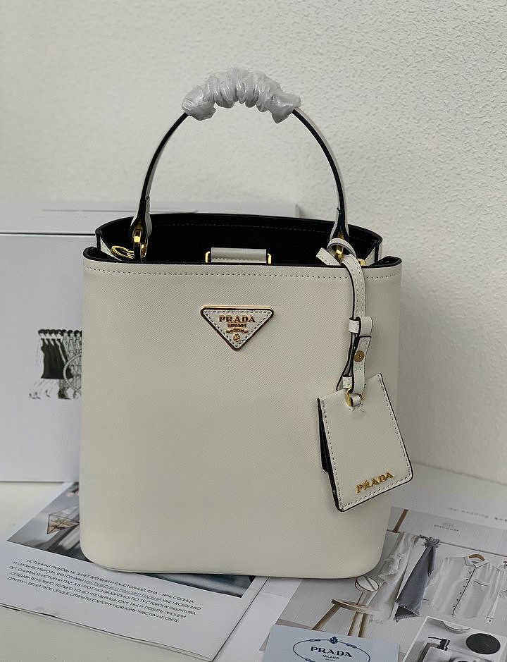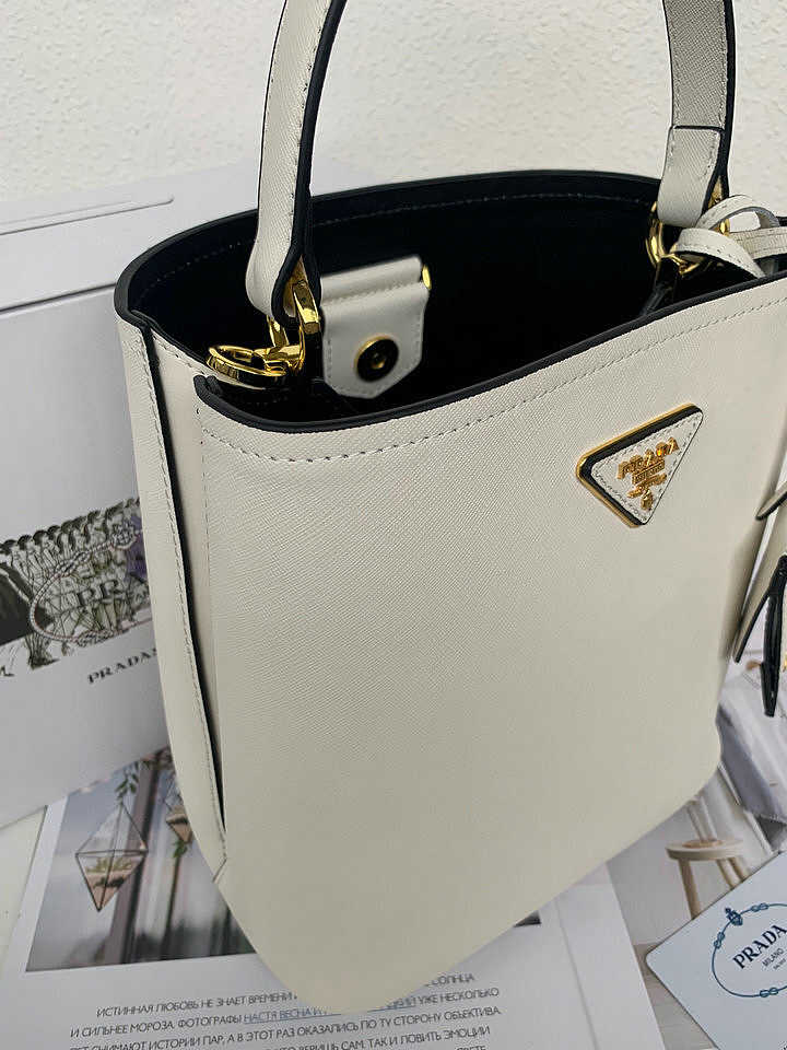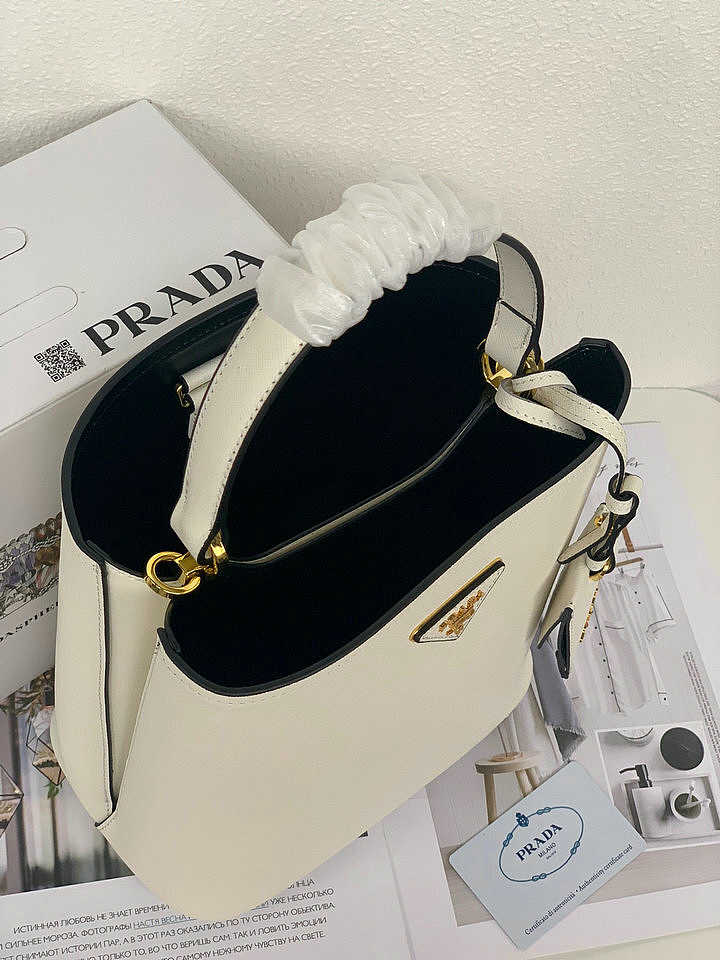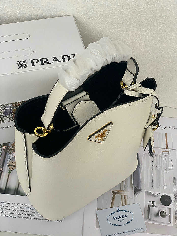 Prada Double Bucket Bag Small Pannier White 22.5x13x21.5cm