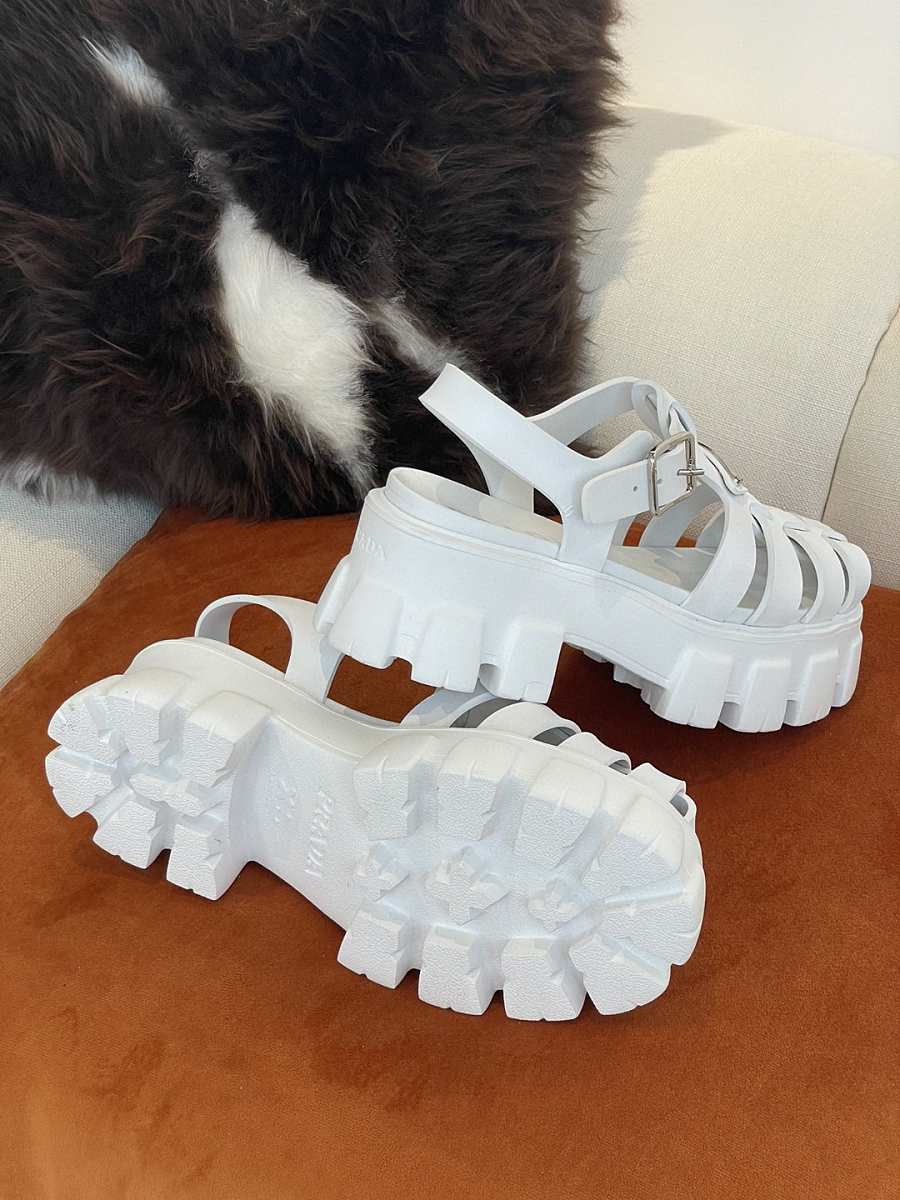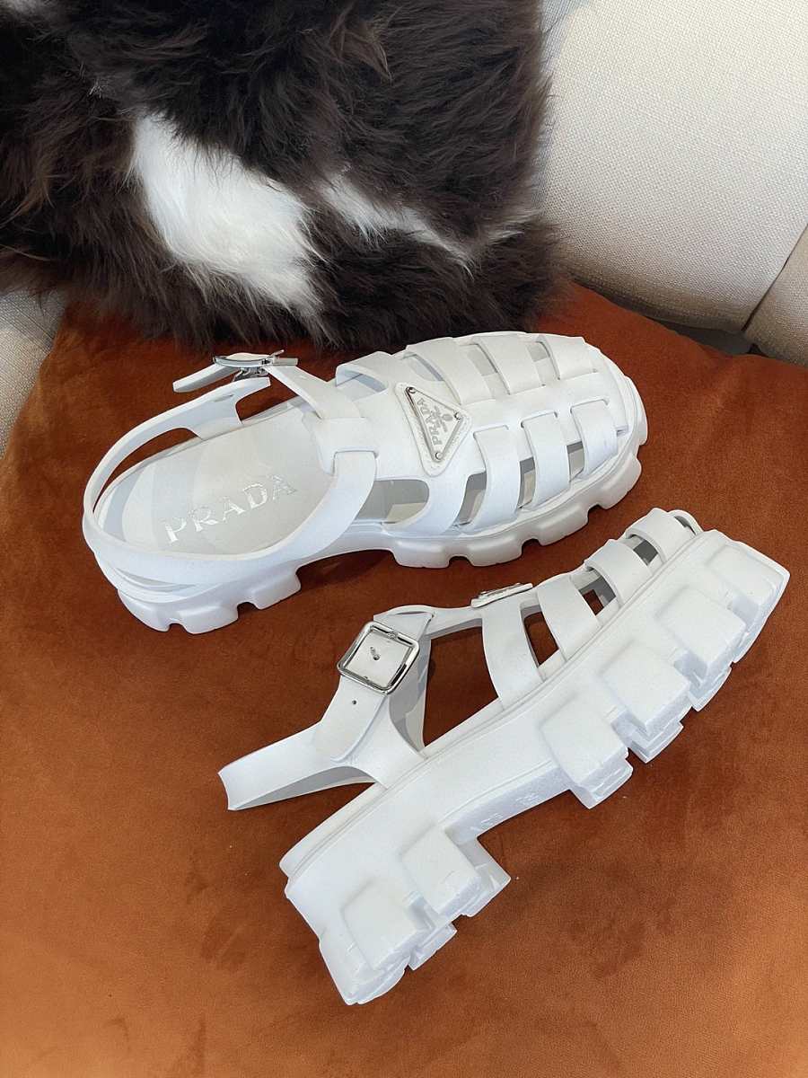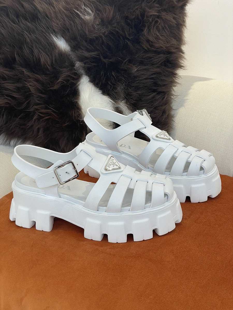 PRADA Foam Triangle Logo Sandals White